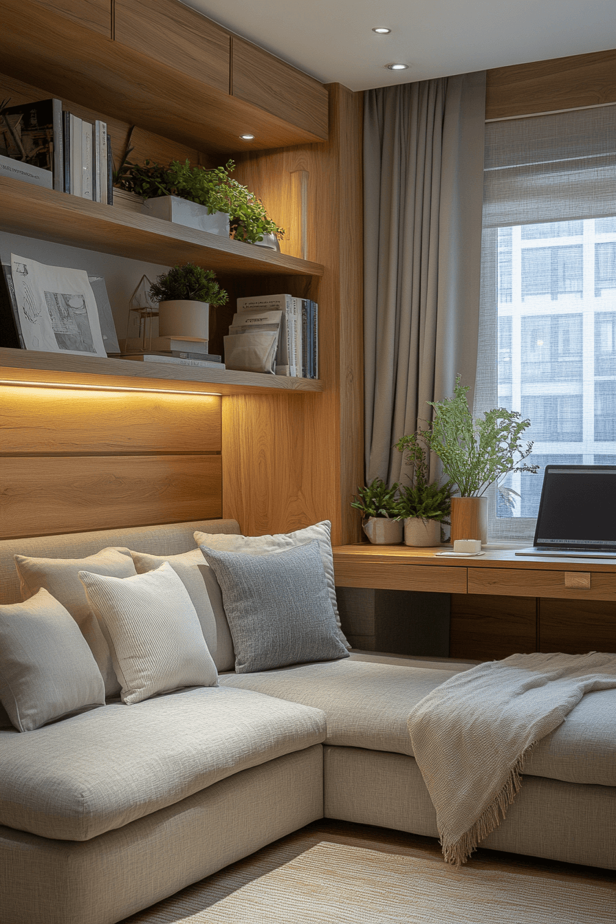 Smart furniture leads the way in modern small room ideas, maximizing usability in compact spaces. Foldable tables, hidden storage compartments, and convertible sofas adapt easily to changing needs. Neutral tones keep the design cohesive and open. Carefully placed lighting highlights functional zones, from workspaces to relaxation corners. Every element is designed with efficiency in mind, ensuring nothing feels wasted. The result is a small room that looks stylish while working hard. Tap here to explore small room ideas with smart furniture.