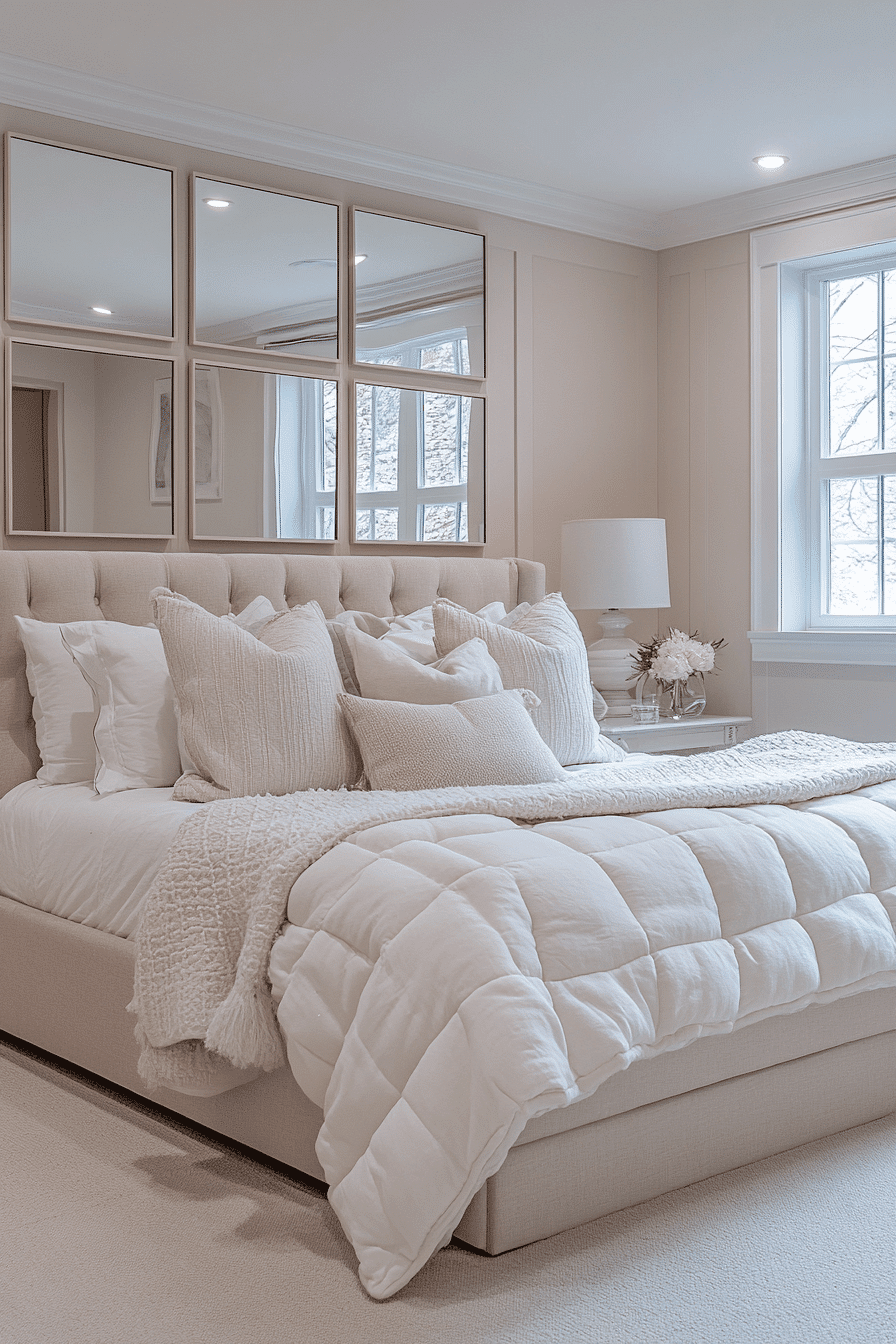 Light-filled layouts are practical basement bedroom ideas that make underground spaces inviting. Pale walls and reflective accents enhance brightness. Wide mirrors double light flow while adding depth. Minimal furniture makes the design look clean. Floor lamps and sconces provide warmth and clarity. Click here to explore more light basement bedroom inspirations.