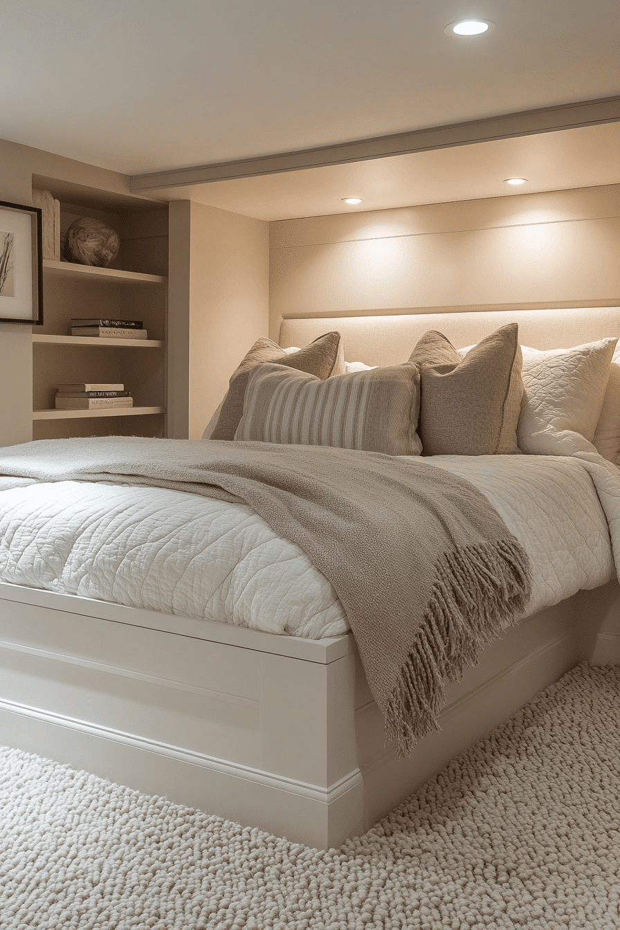 Comfortable nooks are ideal basement bedroom ideas for smaller spaces. Soft bedding and warm lighting maximize coziness. Neutral tones enhance the calming feel. Smart storage solutions keep the area organized. Every element emphasizes comfort without clutter. Tap here to see more comfortable basement bedroom nooks.