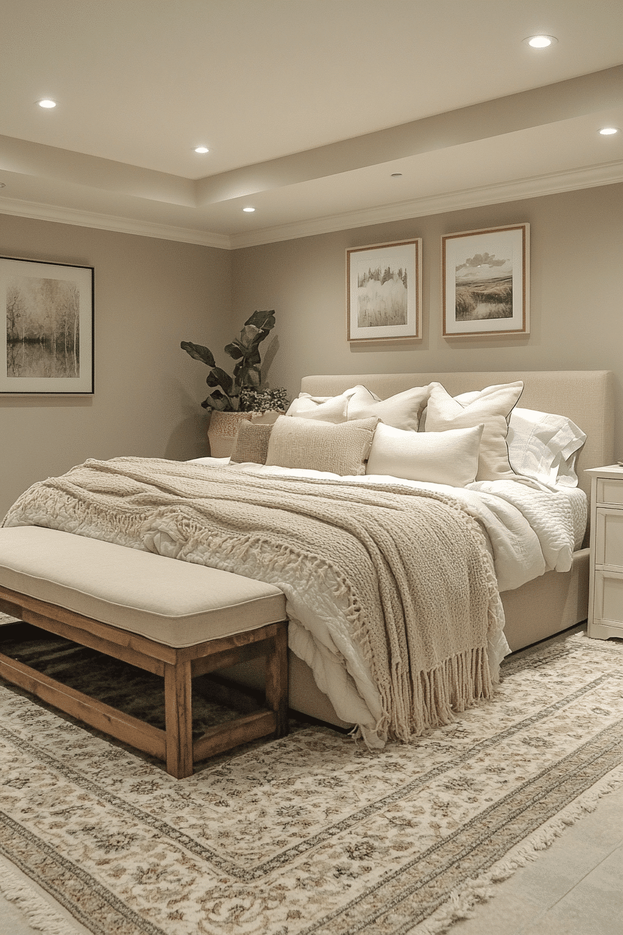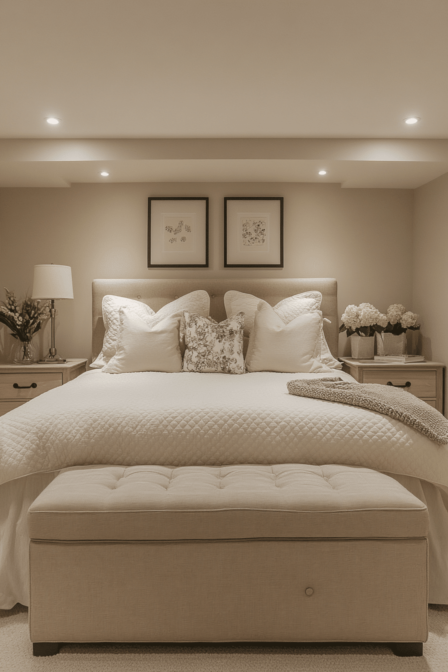 22. Basement Bedroom Elegance