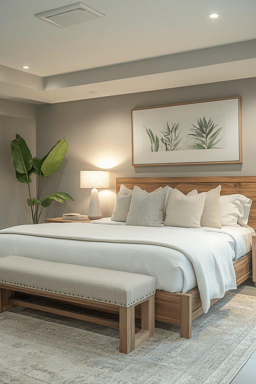 Functionality shines in basement bedroom ideas that prioritize practicality. Built-in storage ensures organization. Multifunctional furniture saves space. Neutral tones keep the design versatile. Layered lighting balances ambiance with purpose. Tap here to discover more functional basement bedroom designs.