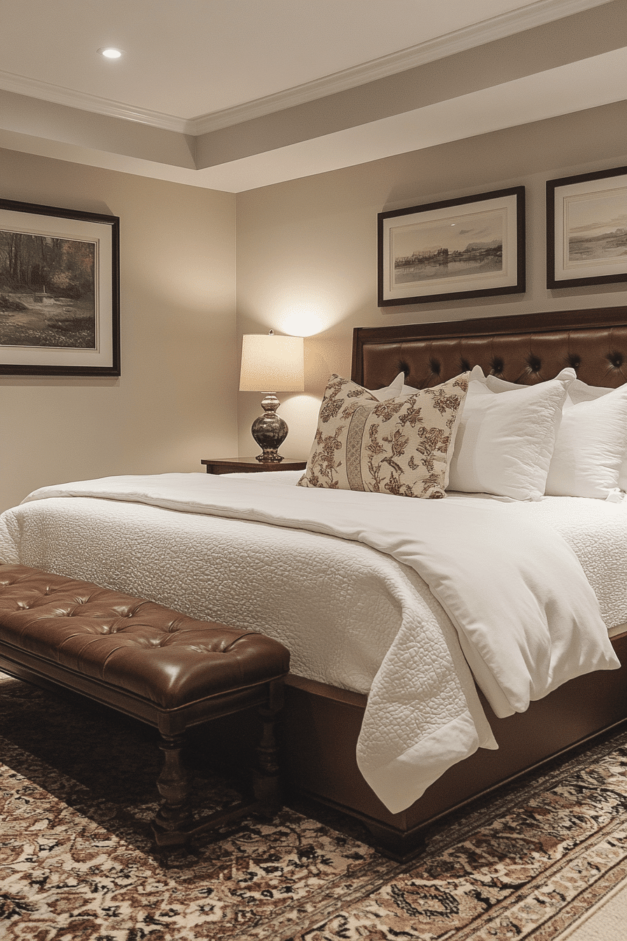 Classic styling is one of the most timeless basement bedroom ideas. Neutral palettes paired with elegant furniture create balance. Subtle décor enhances tradition without overwhelming. Warm lighting highlights key design elements. Organized layouts keep the suite polished. Click here to discover more classic basement bedroom inspirations.