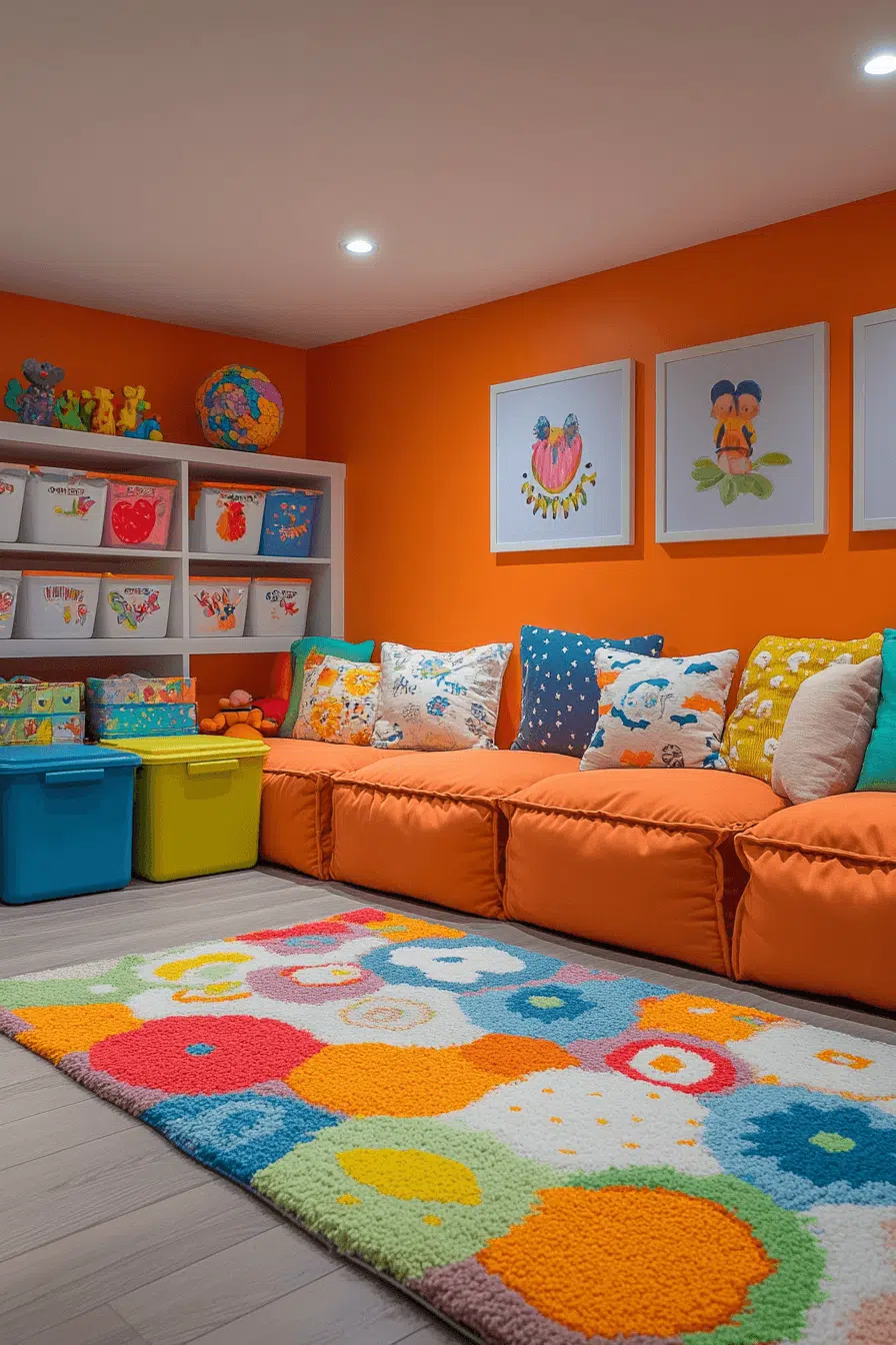 This room screams pure joy—the kind of space where kids actually want to hang out and parents don’t panic about spills or tumbles.