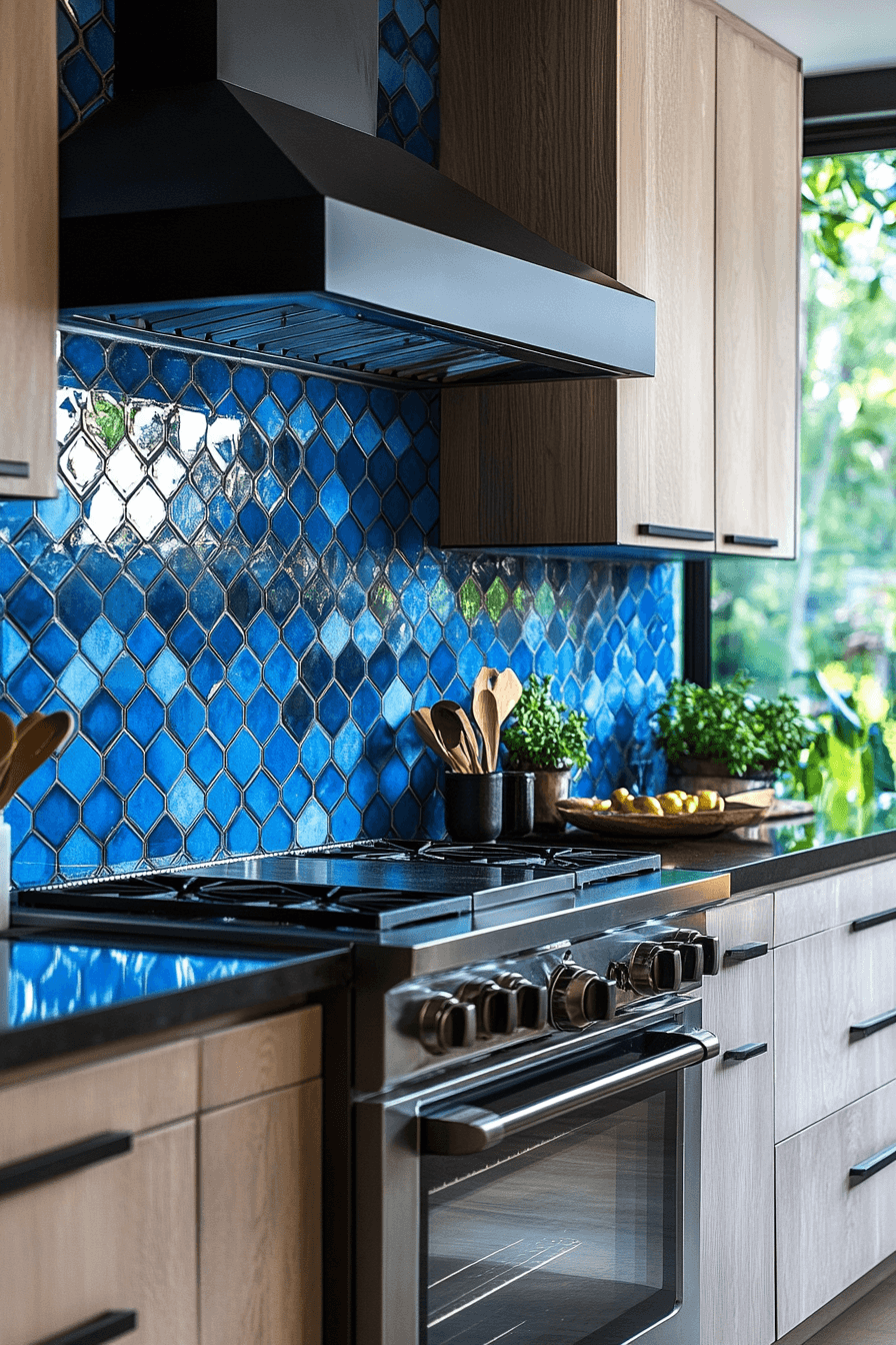 Modern blue tile backsplash kitchen brings together streamlined design and rich color for a space that feels current and bold. Opt for smooth finishes, large formats, or geometric layouts for a clean, up-to-date look. The blue adds warmth and personality to otherwise minimalist kitchens. Whether glossy or matte, it offers an easy way to upgrade your space. The result is both stylish and timeless. Tap here to see modern blue backsplash ideas that turn heads!
