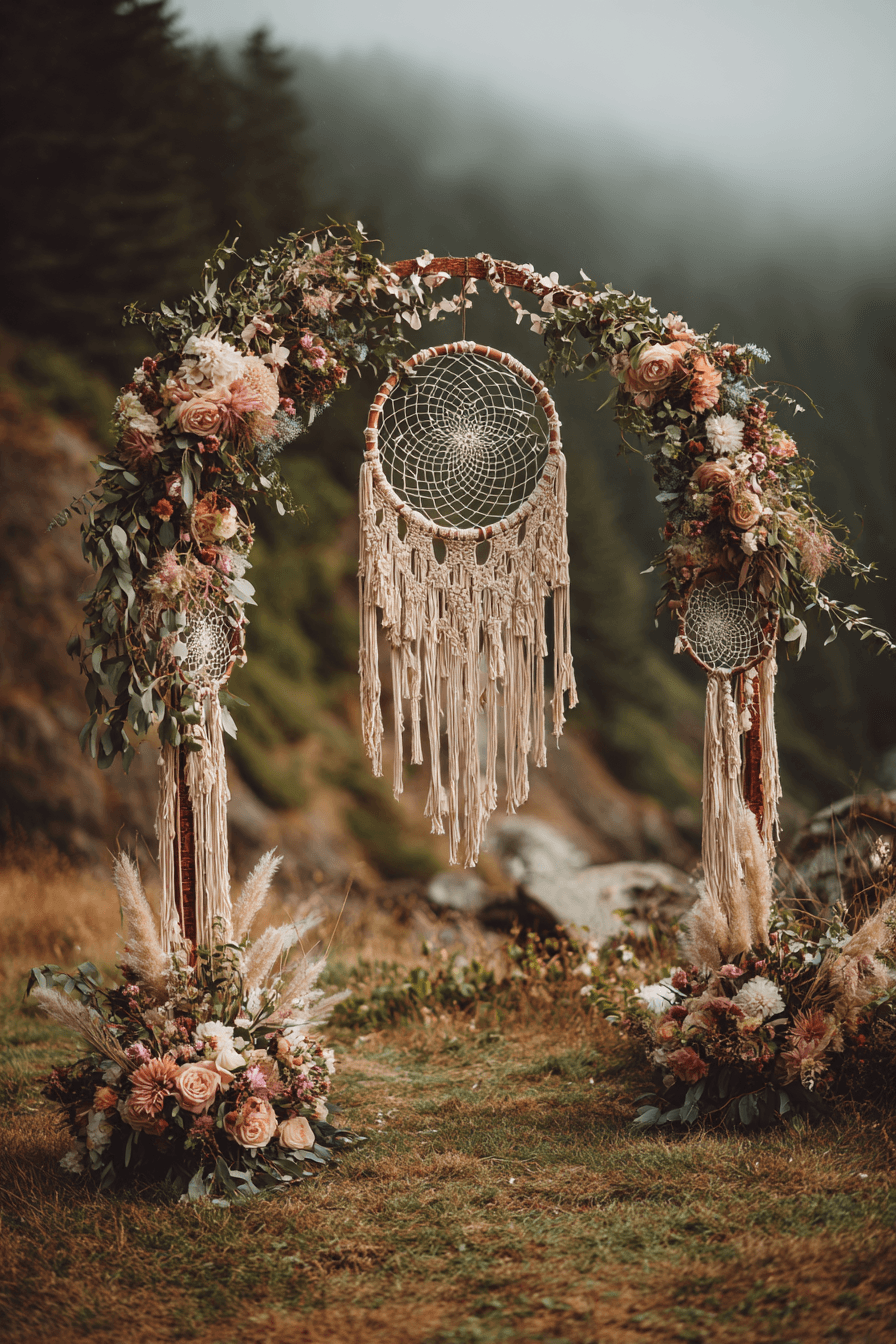 Weave symbolism and style together with dreamcatchers featured in your boho wedding decor. Suspended over the altar or dancing in the wind, they bring a spiritual and personal touch. Feathers, beads, and lace give each one a unique story. This detail embodies the boho wedding essence of art, meaning, and soul. Let your ceremony feel protected, dreamy, and full of intention. Tap now for more meaningful boho wedding details.