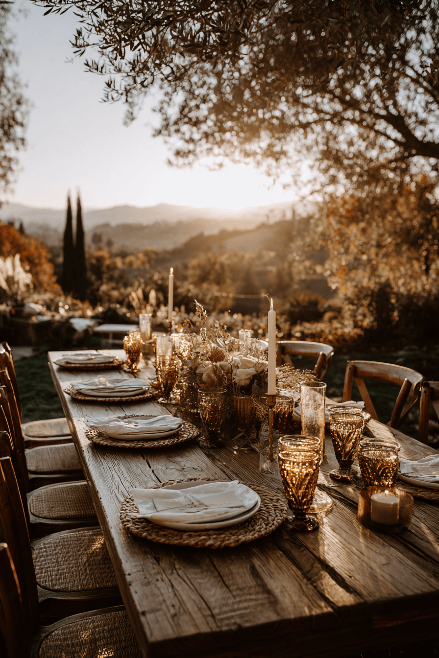 Capture the most magical time of day with a golden hour boho wedding filled with amber hues and soft shadows. The natural lighting enhances everything from florals to fabrics. Warm tones, glowing candles, and metallic touches create a rich, romantic mood. This moment feels like pure love suspended in time. A boho wedding during golden hour is unforgettable and cinematic. Click to see more golden hour perfection.