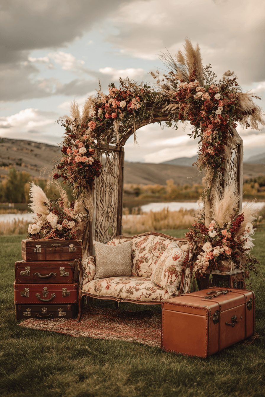 A boho wedding with vintage soul embraces old-world charm with modern flair. Antique rugs, lace gowns, and brass candleholders create a nostalgic yet fresh ambiance. Layered textures and timeless silhouettes tell a romantic, storied tale. This design style honors the past while celebrating new beginnings. A vintage boho wedding is heartfelt, timeless, and full of love. Discover more vintage-inspired boho wedding ideas right here.