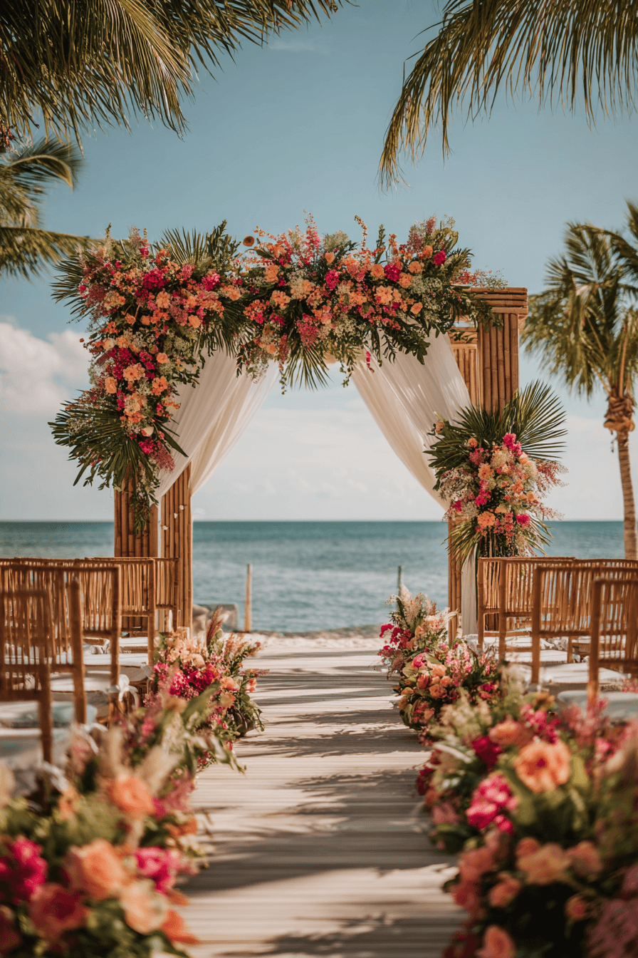 Turn your wedding into a tropical paradise with island-inspired boho wedding flair. Palm leaves, rattan decor, and juicy color palettes create instant joy. Light fabrics, fruit accents, and ocean breezes enhance the playful setting. This theme feels exotic yet relaxed, stylish yet spirited. A tropical boho wedding is ideal for destination dreamers and bold romantics. Click now for more tropical boho ideas.