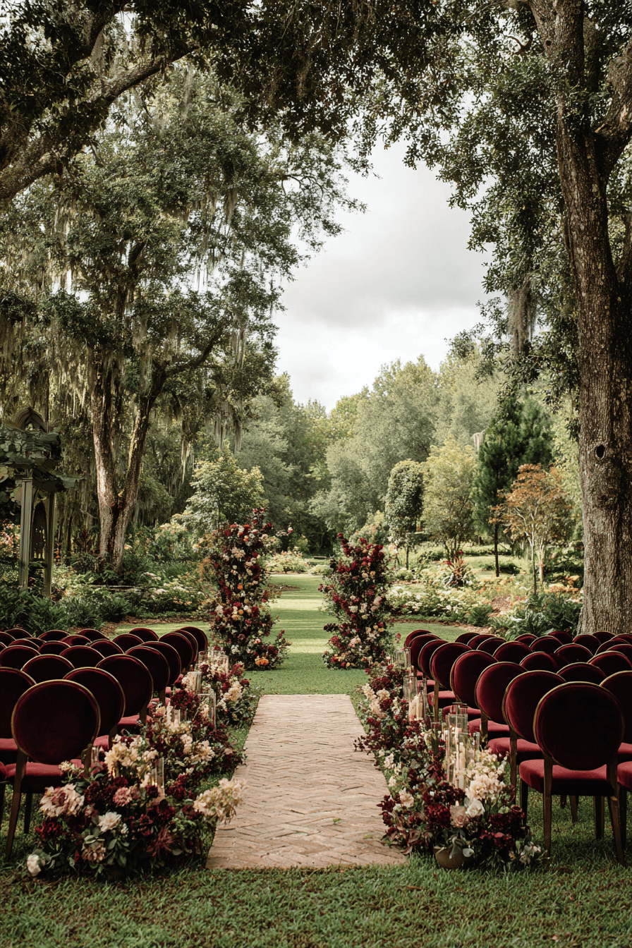 Elevate boho style to luxury with elegant touches like velvet seating, crystal chandeliers, and lavish florals. A boho wedding doesn’t have to be rustic—it can also be refined, glamorous, and bold. Rich textures and deep hues add dimension to your ceremony and reception. It’s where free-spirited design meets upscale taste. This aesthetic is made for couples who want bohemian charm with a sophisticated twist. Click to explore more boho luxe inspirations now.