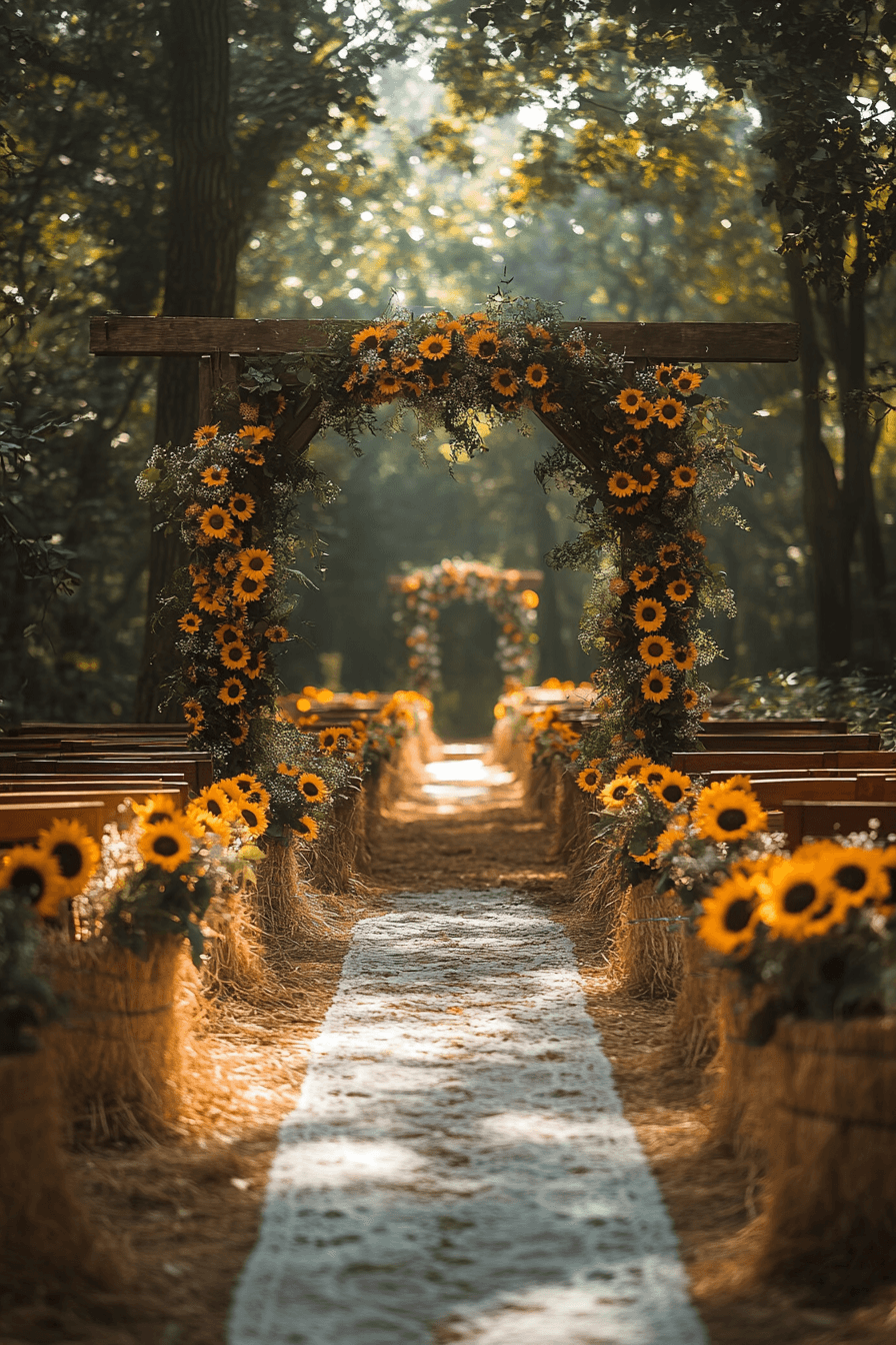 Let cheerful sunflowers set the tone for your boho wedding bursting with brightness and rustic charm. These golden blooms bring a joyful, down-to-earth feeling to your ceremony and decor. Paired with wooden details, burlap, and lace, they create a charming countryside vibe. A boho wedding with sunflowers is both radiant and relaxed. It’s perfect for summer lovers and sunshine souls. Tap to discover more sunflower-filled wedding ideas today.