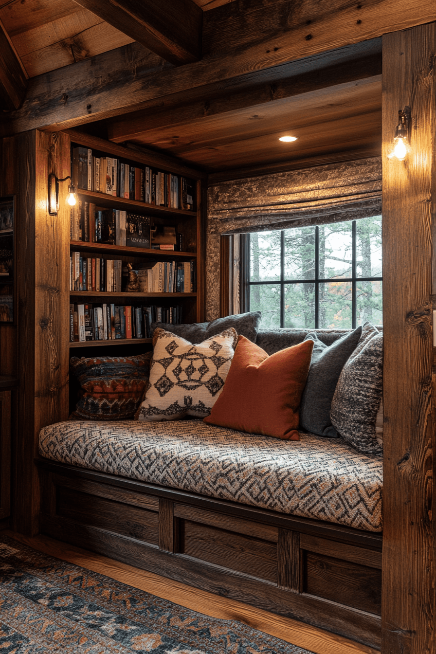 These inviting book nook ideas focus on depth, warmth, and comfort. Layer blankets, rugs, and cushions for a snug look. Use dimmable lights to enhance the cozy mood. The space feels private and protective, ideal for long reads. It’s a cocoon of calm that feels like home. Click to explore more cozy reading den setups!