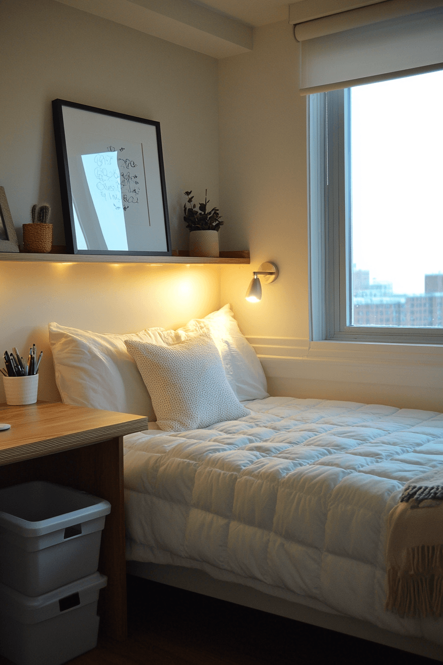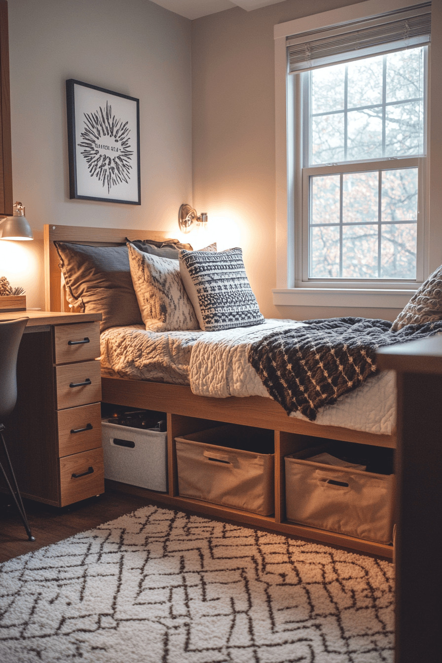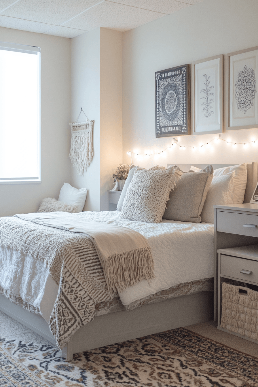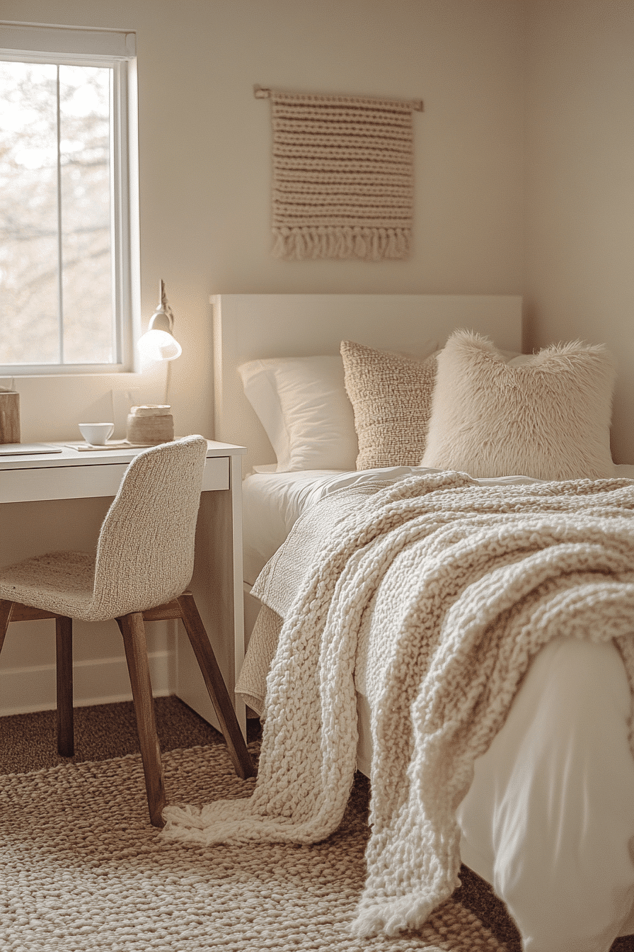 1. Neutral Cozy Dorm Room