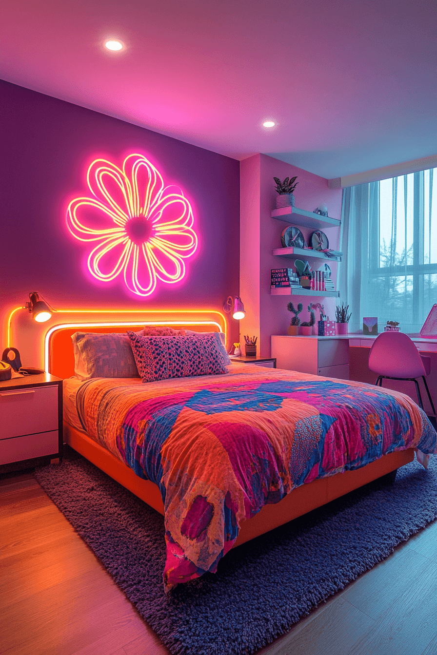 16. Dorm Room With Neon Accents