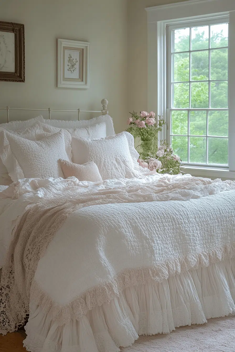 Ruffled bedding adds soft texture and romantic charm to any sleeping space, making it a perfect fit for cottagecore bedroom ideas. The delicate layers create movement and depth without overwhelming the room. Paired with gentle colors, ruffles bring a lighthearted, airy feel. This style works beautifully for a restful, whimsical environment. It invites comfort and a touch of playfulness.