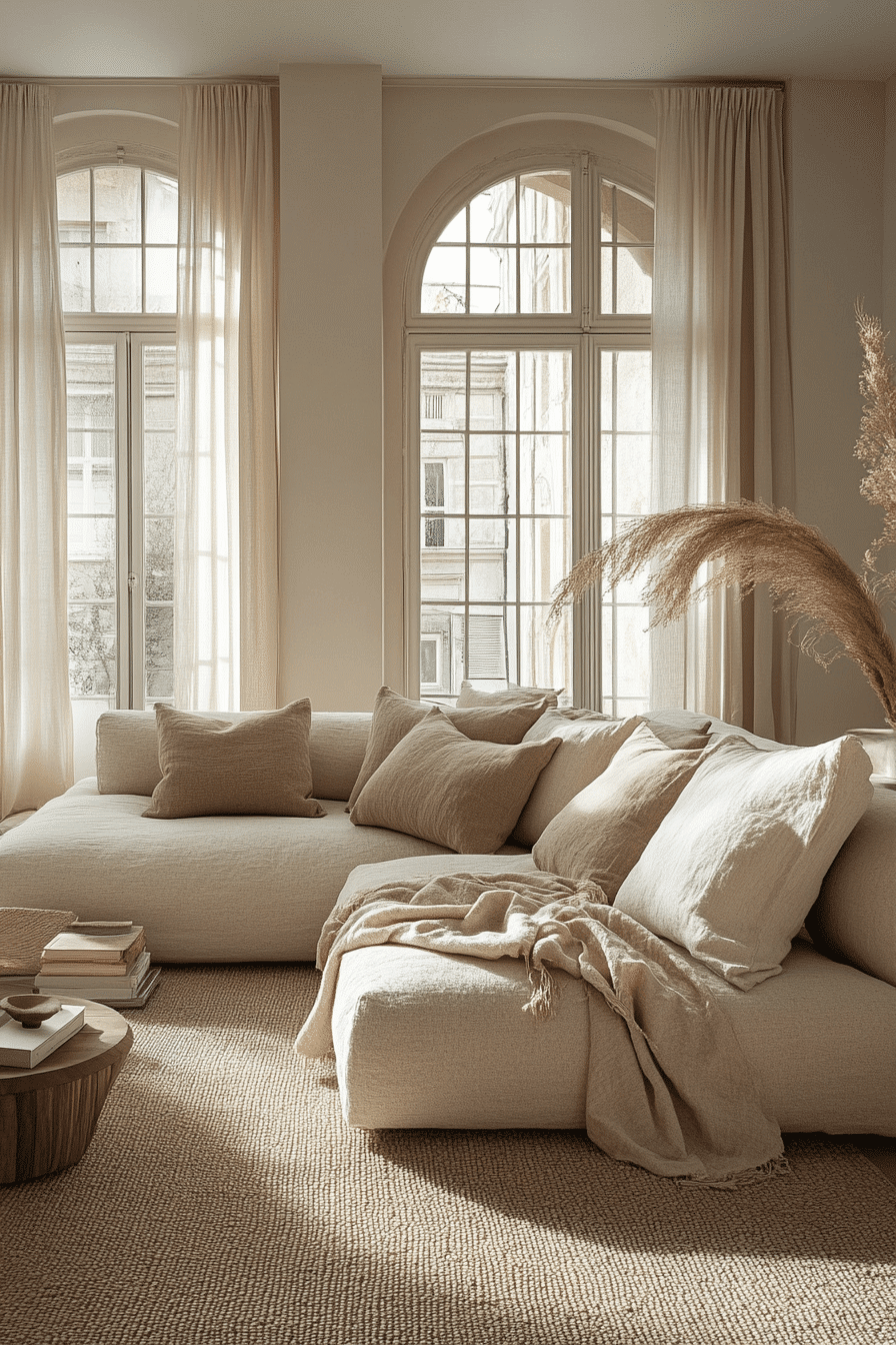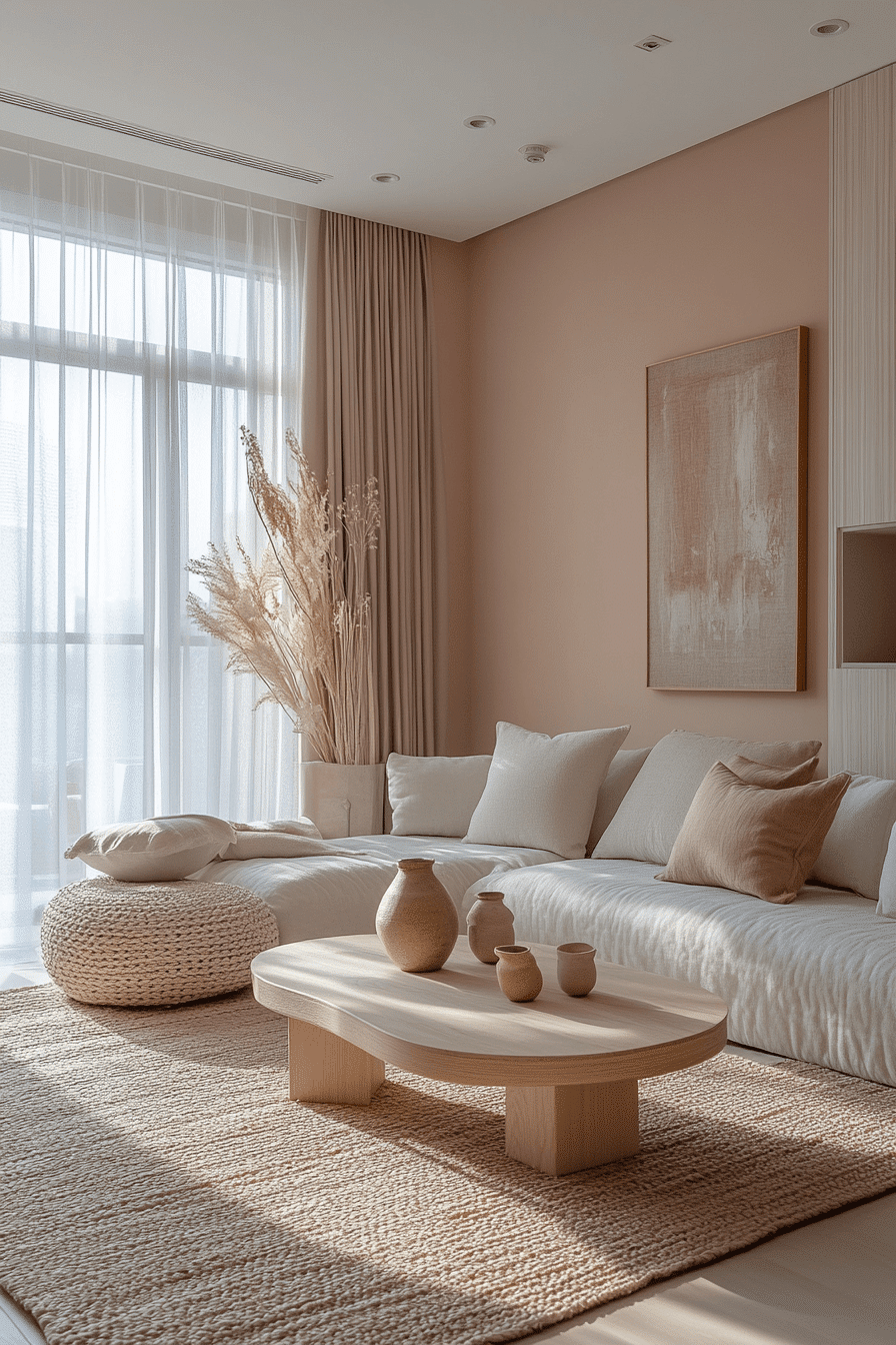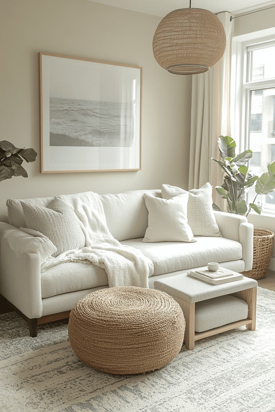 Low contrast color schemes give a cozy apartment a dreamy, cohesive feel. Soft variations of beige, white, and light gray blend seamlessly for a gentle visual experience. This approach reduces sharp transitions, allowing the eyes to relax. It also enhances natural light and makes rooms feel more spacious. The result is a tranquil, cloud-like space that feels effortlessly cozy. Tap for low contrast cozy apartment ideas that radiate calm.
