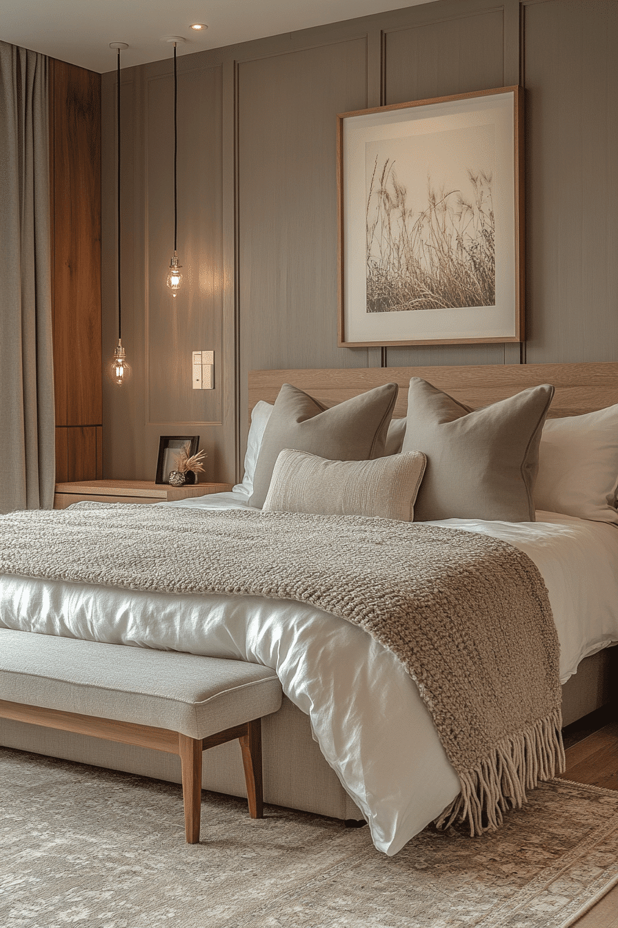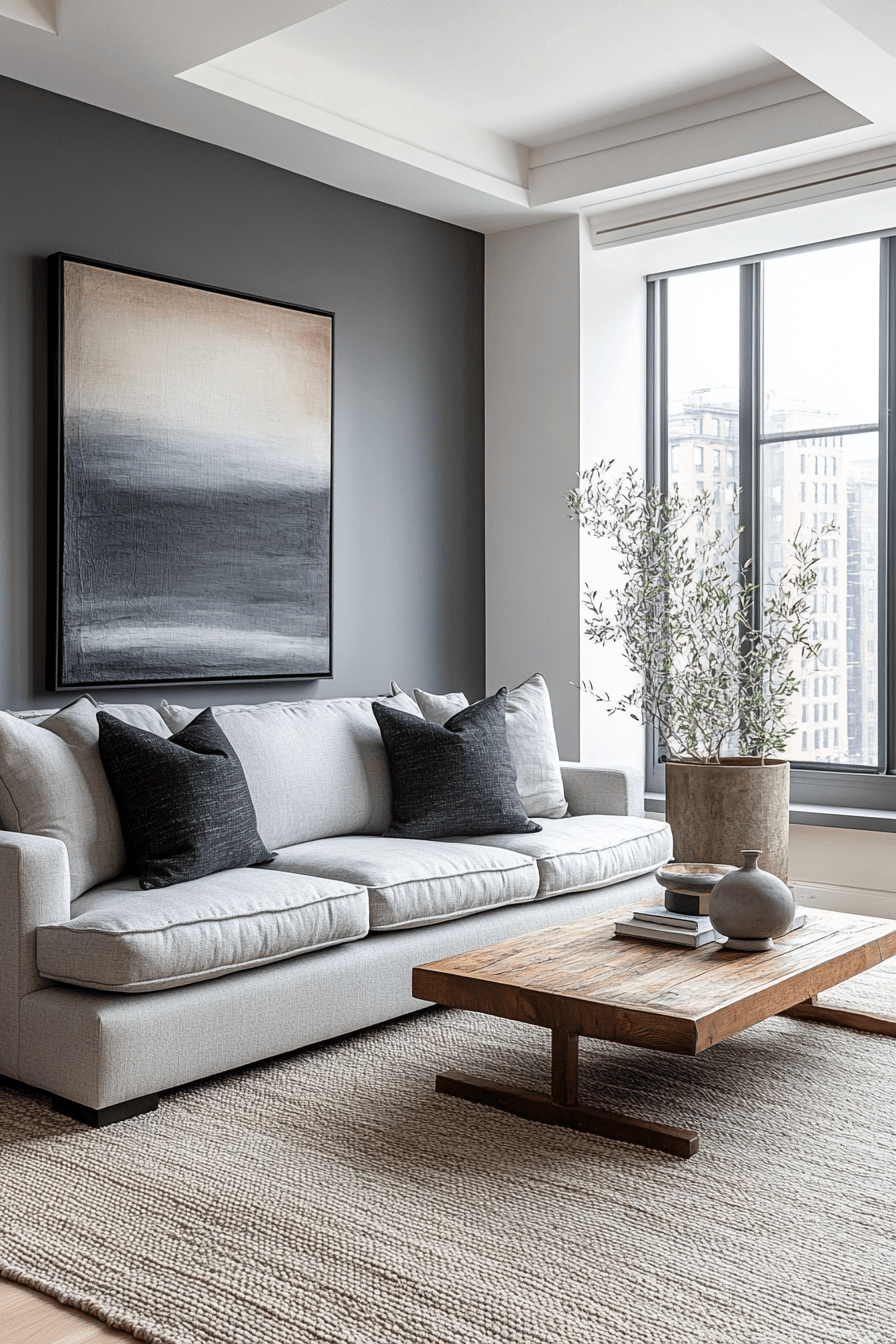 A peaceful palette of soft gray, creamy beige, and warm taupe creates a cozy apartment that calms the soul. These shades bring gentle harmony without overpowering the space. The result is a visually soothing interior that encourages deep relaxation. Layer in cozy textures and soft lighting for added depth. This is a palette you’ll never tire of. Click for cozy apartment ideas built around peaceful color choices!