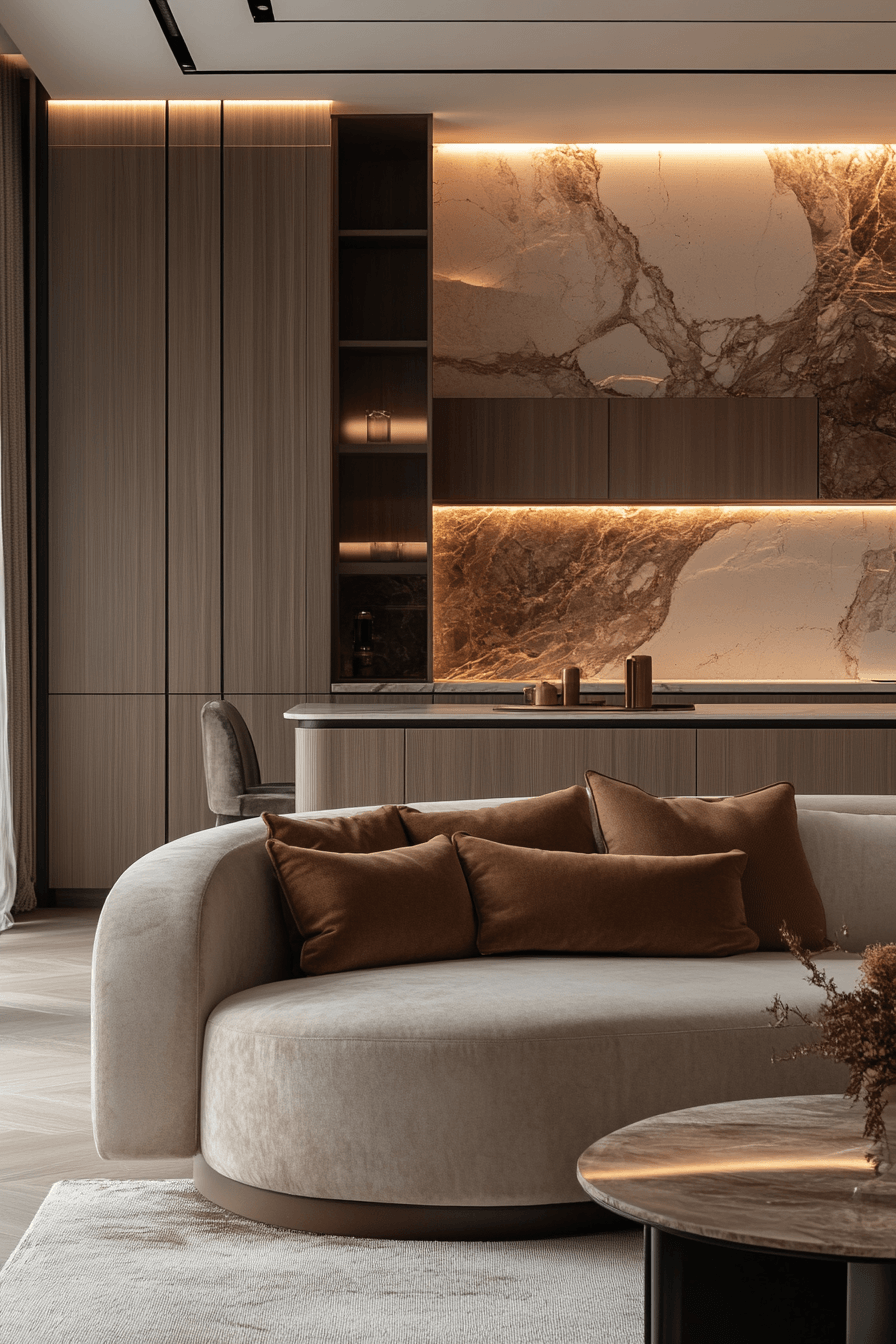 Curved furniture brings softness and movement into your cozy apartment. Rounded sofas, arched mirrors, and circular tables add elegance and a touch of playfulness. These shapes naturally create a more welcoming atmosphere. They also help soften tight corners and enhance flow in small layouts. Curves promote comfort and a sense of safety. Tap here to explore cozy apartment layouts with graceful, curved elements!