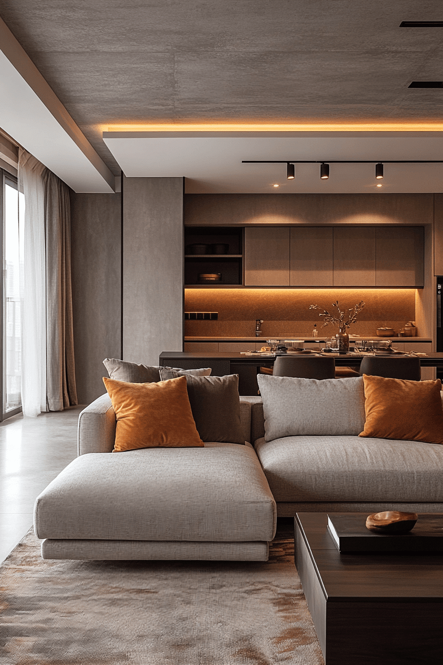 A smooth surfaces modern apartment feels sleek yet soft, ideal for a cozy apartment with contemporary flair. Surfaces like matte cabinets, quartz counters, and brushed metal details keep the look polished. The lack of texture doesn’t mean a lack of comfort—soft textiles and curved furniture round it out. The clean lines and seamless materials create a peaceful atmosphere. It’s a space where elegance meets ease. Click to see cozy apartment designs that shine with modern smoothness!