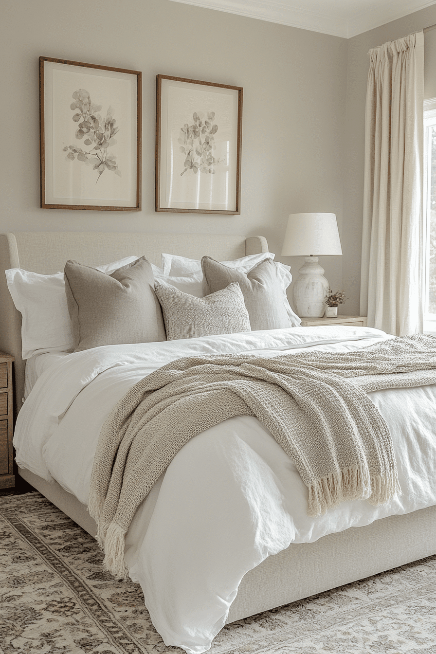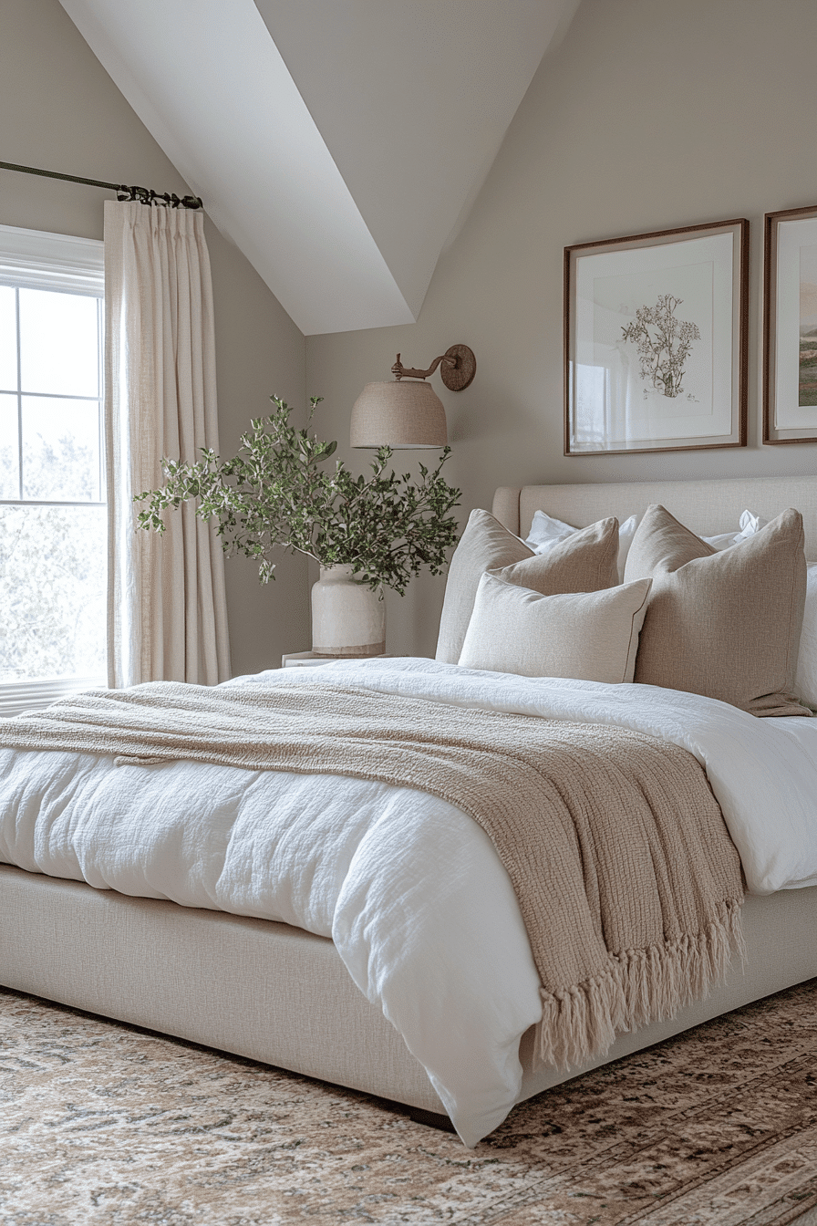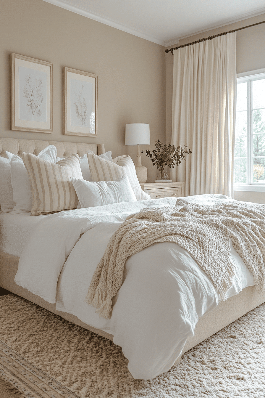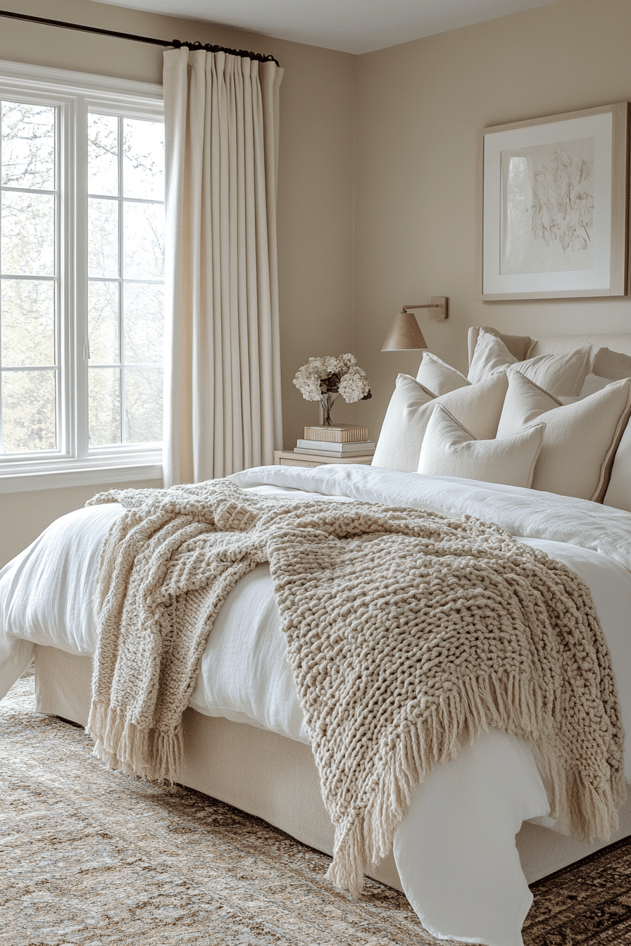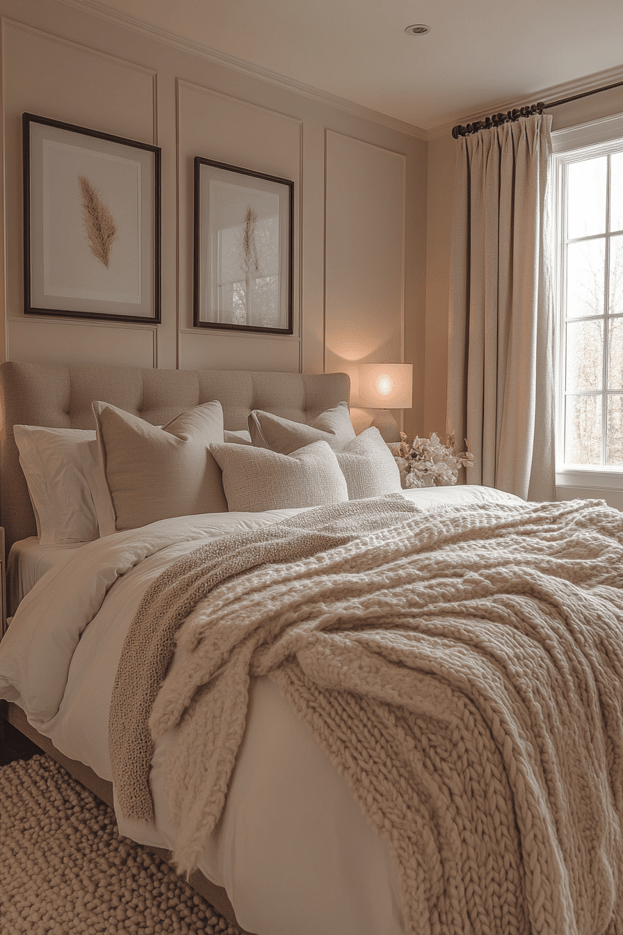 Soft neutrals create a peaceful foundation for any cozy bedroom by blending gentle shades of beige, cream, and ivory. These calming colors bring warmth without overwhelming the senses, making the space feel instantly inviting. A cozy bedroom with neutrals feels timeless and adaptable, allowing small touches of color to shine. Layered linens and plush throws enhance the softness, adding both comfort and style. Soft neutral tones also maximize natural light, keeping the room bright yet restful. Tap here to explore more cozy bedroom inspiration in soft neutrals.