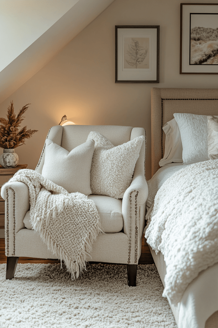 A cozy bedroom instantly feels more inviting when you dedicate a small corner as a snug nook. Adding a comfy chair, side table, or layered cushions makes it the perfect reading or relaxation spot. This little area adds personality while enhancing the overall sense of comfort. It breaks up the room layout and creates dimension without clutter. A cozy bedroom nook feels like a hidden retreat within your own space. Tap here to discover more cozy bedroom nook ideas.
