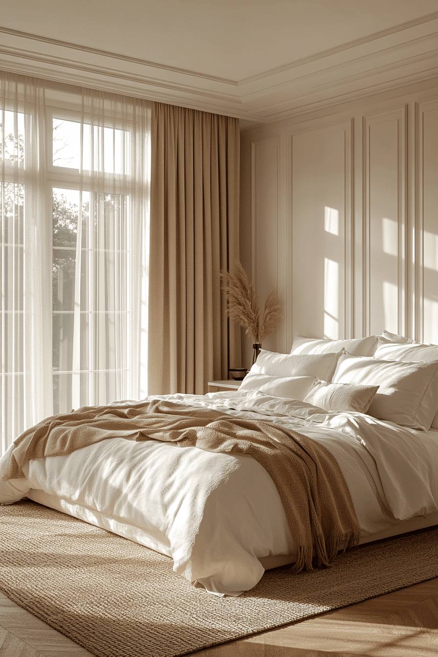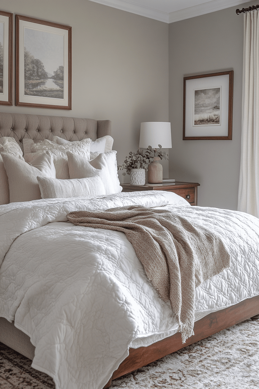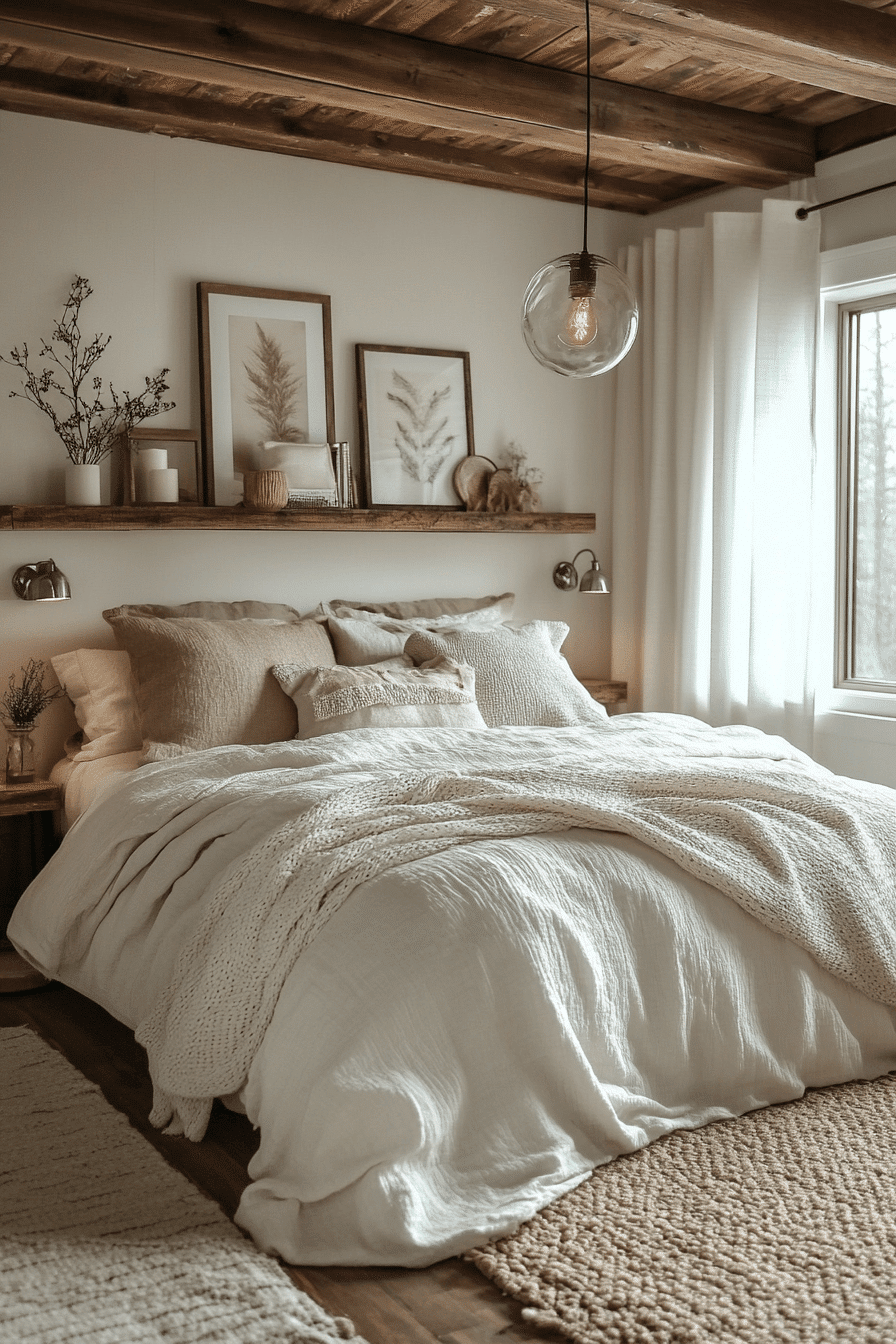 Neutral tones paired with multiple layers of fabrics create a cozy bedroom filled with serenity. From pillows to quilts, layering adds both depth and comfort. The palette ensures the room feels calm and timeless. Neutral layers also allow textures to take center stage, keeping the design visually interesting. This approach guarantees both style and restfulness. Click to find more cozy bedroom looks with neutral layers.