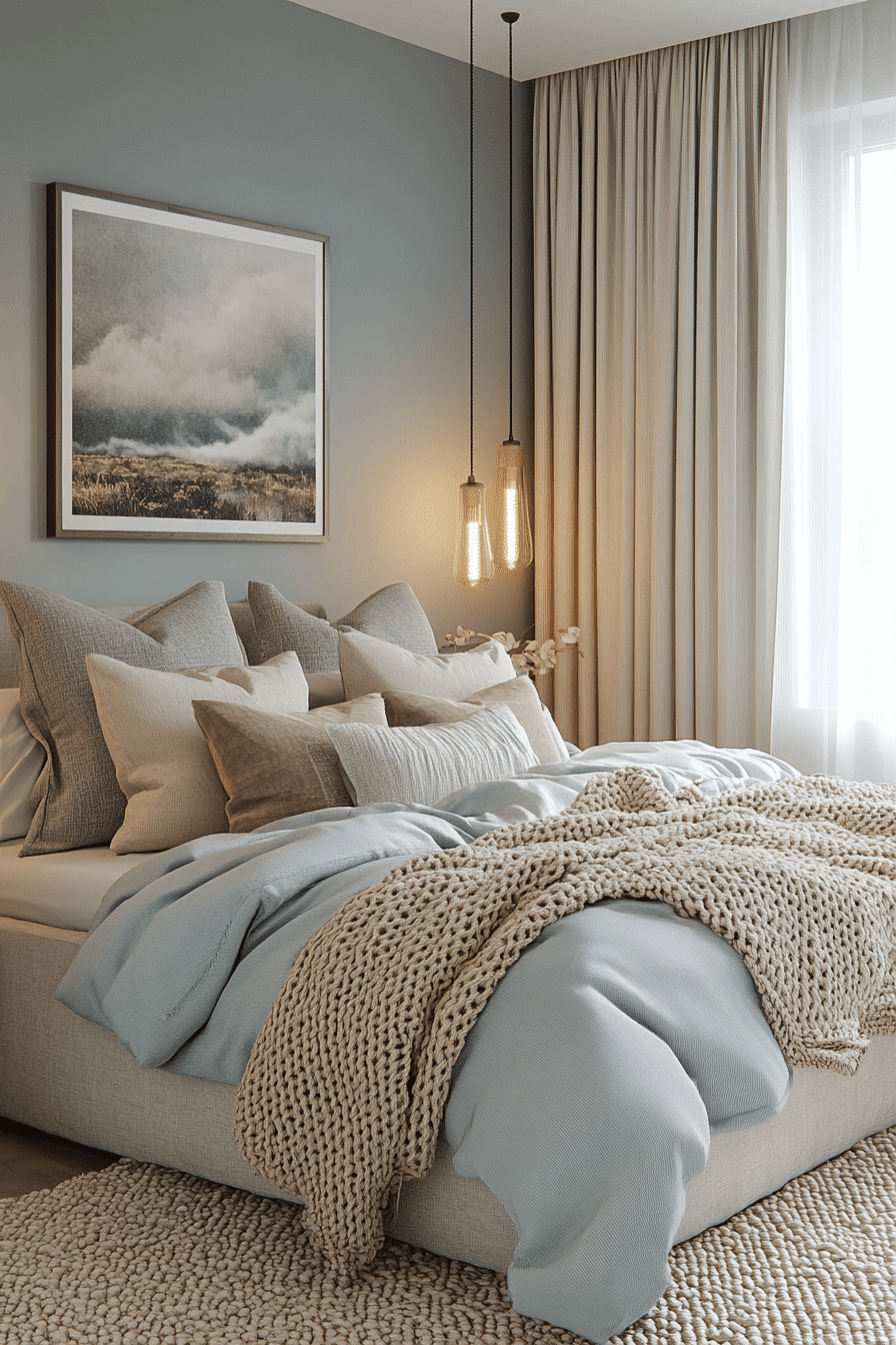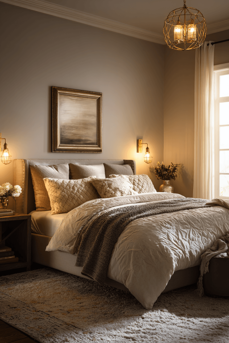 calm tones transform a cozy bedroom into a peaceful sanctuary. Shades like beige, ivory, and pale gray set the foundation for relaxation. Layering these colors with warm textiles makes the space even more inviting. A calm palette also enhances natural light and creates balance. This style guarantees a restful, soothing environment every night. Click here to explore cozy bedroom ideas with calming tones.