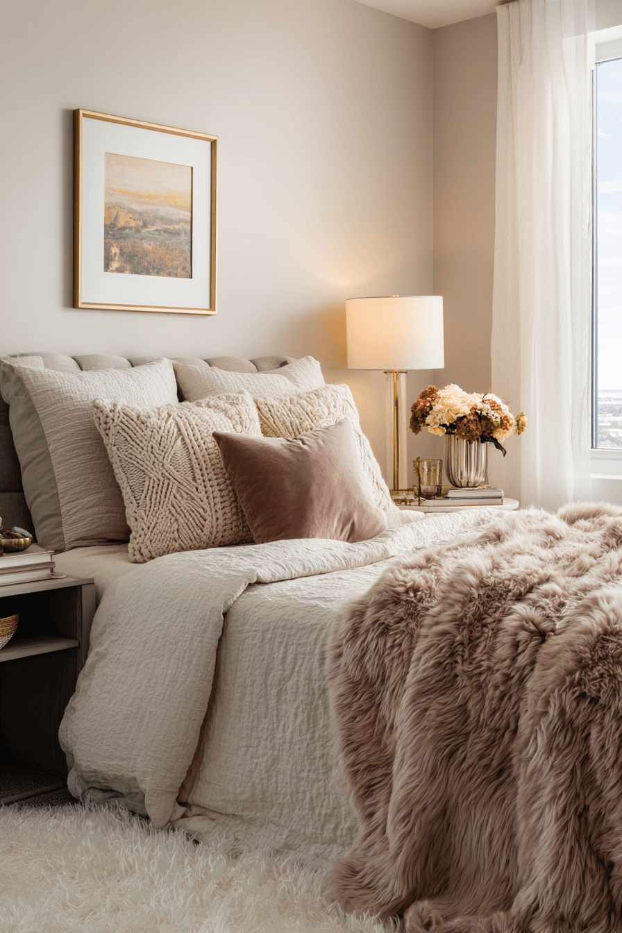 Incorporating soft textures is key to creating the ultimate cozy bedroom atmosphere. Think faux fur throws, knit blankets, and velvet pillows for a tactile experience. These layers add depth and make the room feel instantly more inviting. Soft textures also help reduce visual harshness, creating a more balanced design. A cozy bedroom filled with comforting fabrics feels like a sanctuary. Tap to see cozy bedroom ideas that celebrate texture.