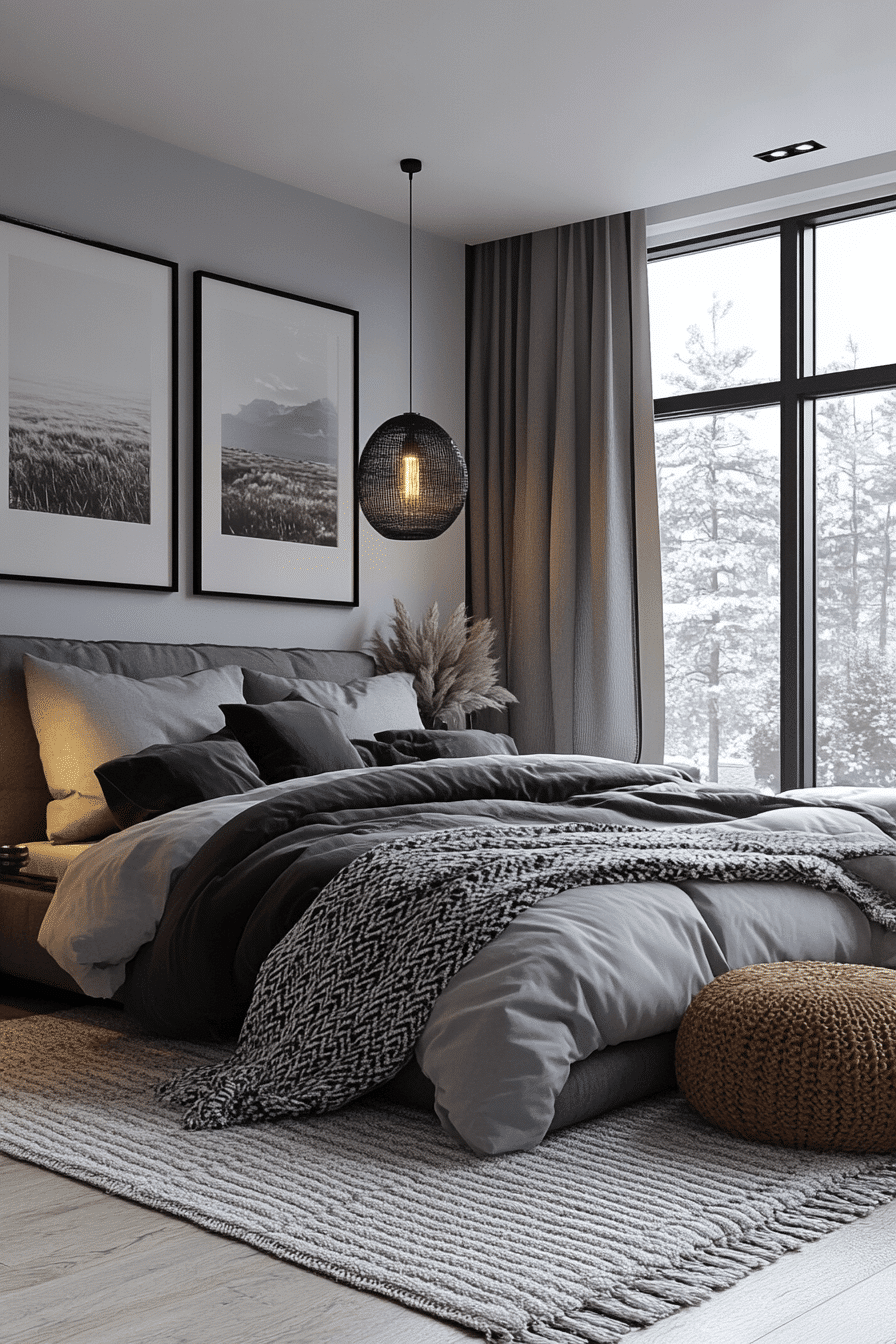 A monochrome palette can create a cozy bedroom that feels both stylish and restful. Sticking to shades of one color, such as gray or beige, keeps the look cohesive. Layering different tones and materials within that palette adds dimension. The result is a clean, modern design that doesn’t sacrifice warmth. A monochrome cozy bedroom feels calm and timeless. Click here for more cozy bedroom monochrome design inspiration.