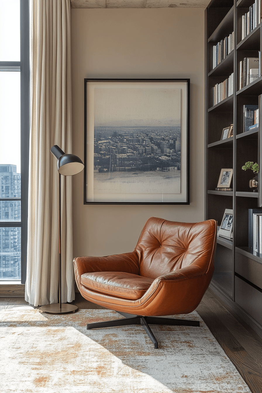 In the heart of the city, an urban-inspired cozy reading nook combines modernity with comfort. Think bold colors, industrial accents, and sleek, contemporary furniture that balances both style and relaxation. Incorporating open shelving or book stacks adds an urban edge, while soft textiles like cushions and throws offer the perfect contrast. Large windows with city views make this nook the ideal spot for book lovers living in urban settings. Explore more urban book nook ideas here!