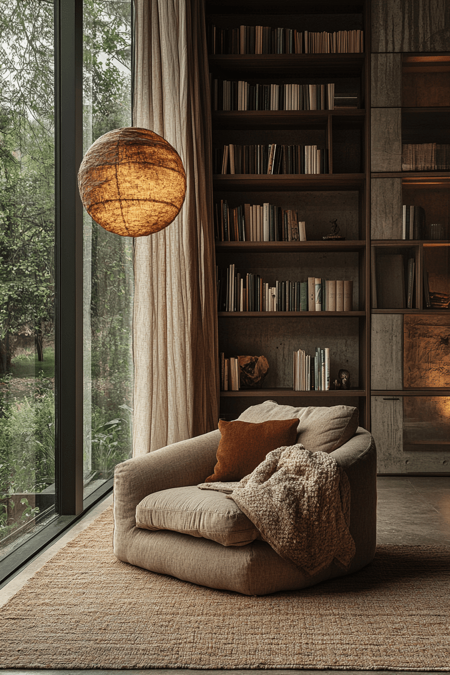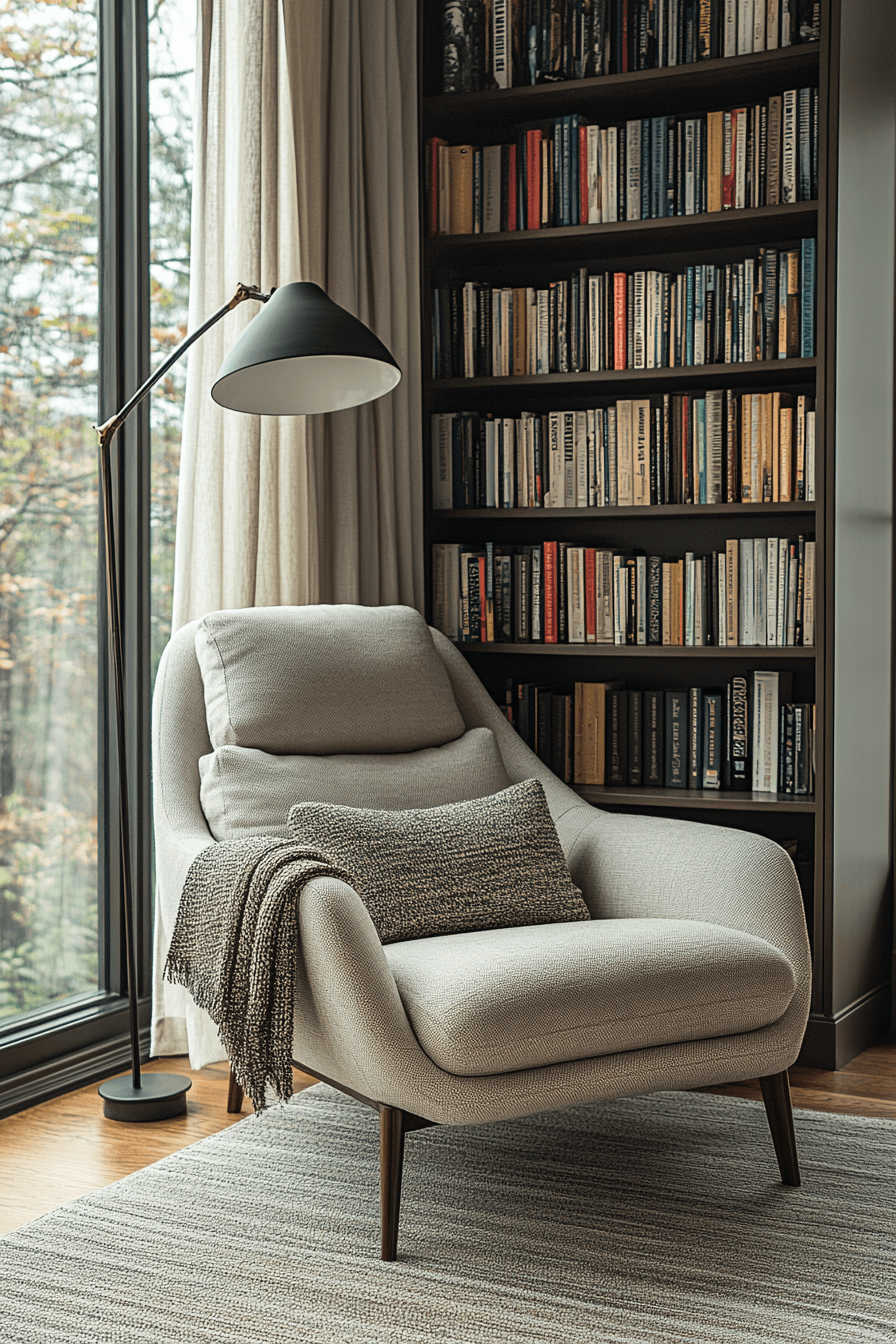 For those who appreciate simplicity, a minimalist cozy reading nook focuses on clean lines and functional design. Choose a sleek chair or bench with clean, geometric shapes, and use neutral colors to promote relaxation. Limit clutter to maintain a serene, peaceful space that invites you to dive into your book. A single floor lamp or pendant light adds warmth without overwhelming the space. This minimalist approach to a cozy reading nook allows for ultimate focus and tranquility. Tap here for minimalist reading escape inspiration!