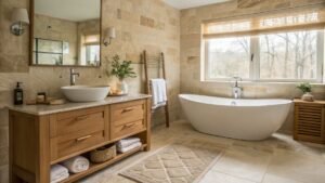Black and White Edge creates bold sophistication with striking contrast and clean geometry. The dark bathroom comes alive through sleek black tiles and crisp white accents. This high‑contrast palette feels modern and confident. Mirrors and metallic details add reflective interest and light play. It’s a design that’s both classic and daring. Click here to discover elegant black‑and‑white dark bathroom ideas!