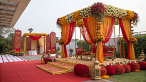 Lush gardens come alive with desi wedding decor full of floral splendor. Mandaps under open skies and colorful seating areas radiate natural charm. Fresh blooms and greenery merge with cultural motifs seamlessly. The result is peaceful, romantic, and breathtakingly photogenic. Nature’s palette becomes your perfect backdrop. Click for dreamy outdoor wedding decor inspirations!