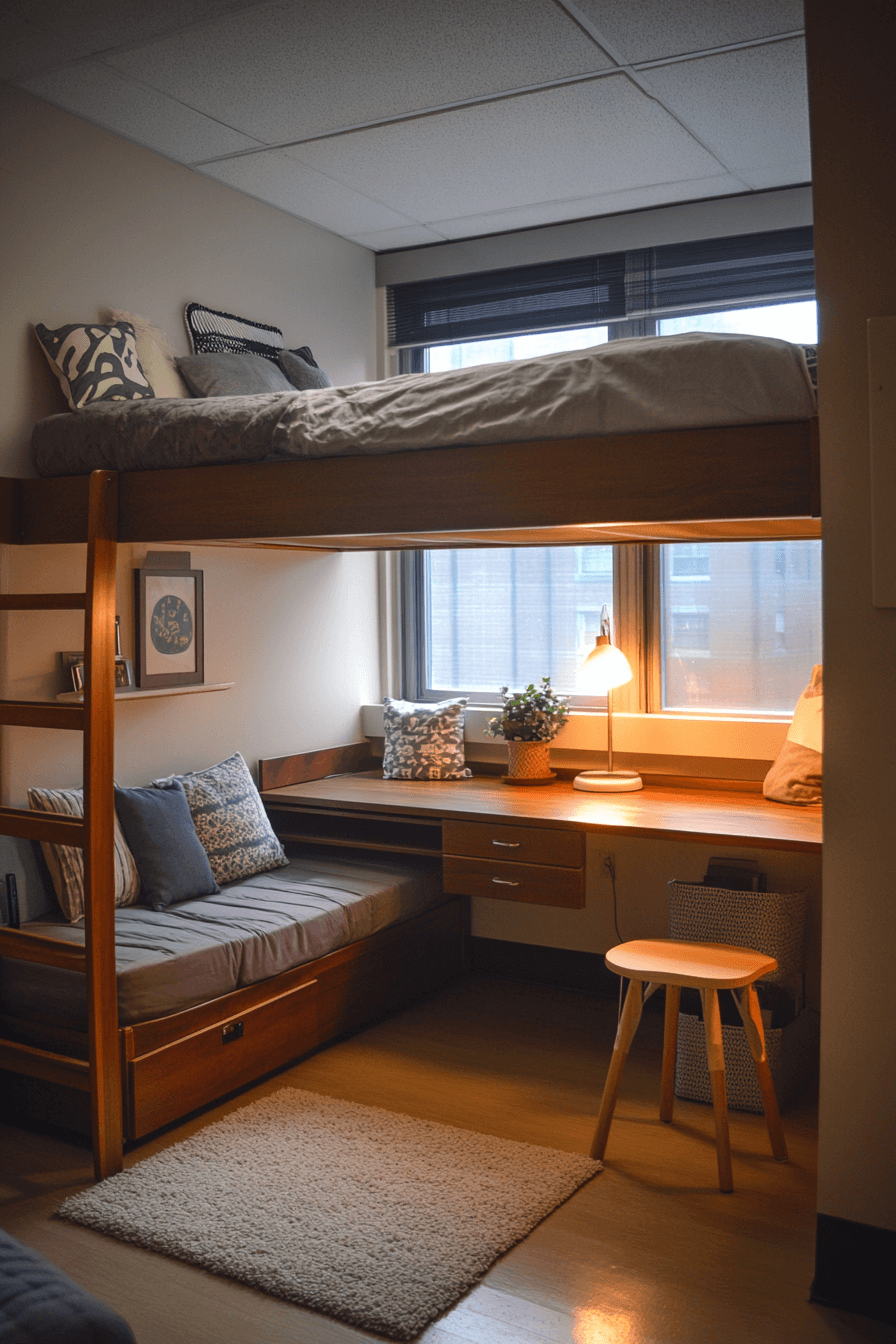 Compact dorm room designs with flair show that small doesn’t mean boring. With the right layout and statement pieces, even tight quarters can feel fun and expressive. Add pops of color, bold bedding, or quirky storage solutions to elevate your style. This approach is all about making the most of what you have. It proves personality can shine through in any size space. Click to explore compact dorm room designs full of creative flair!