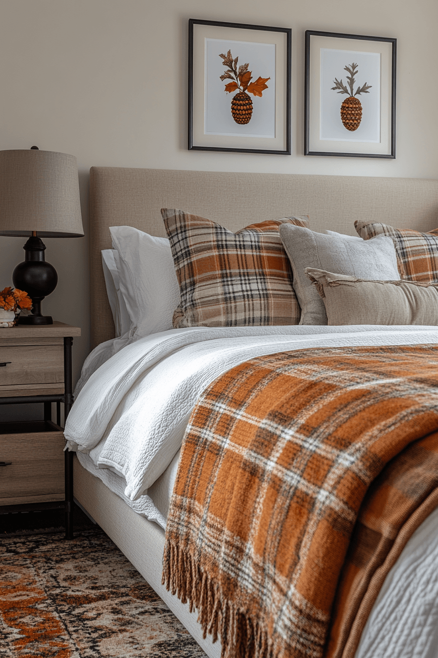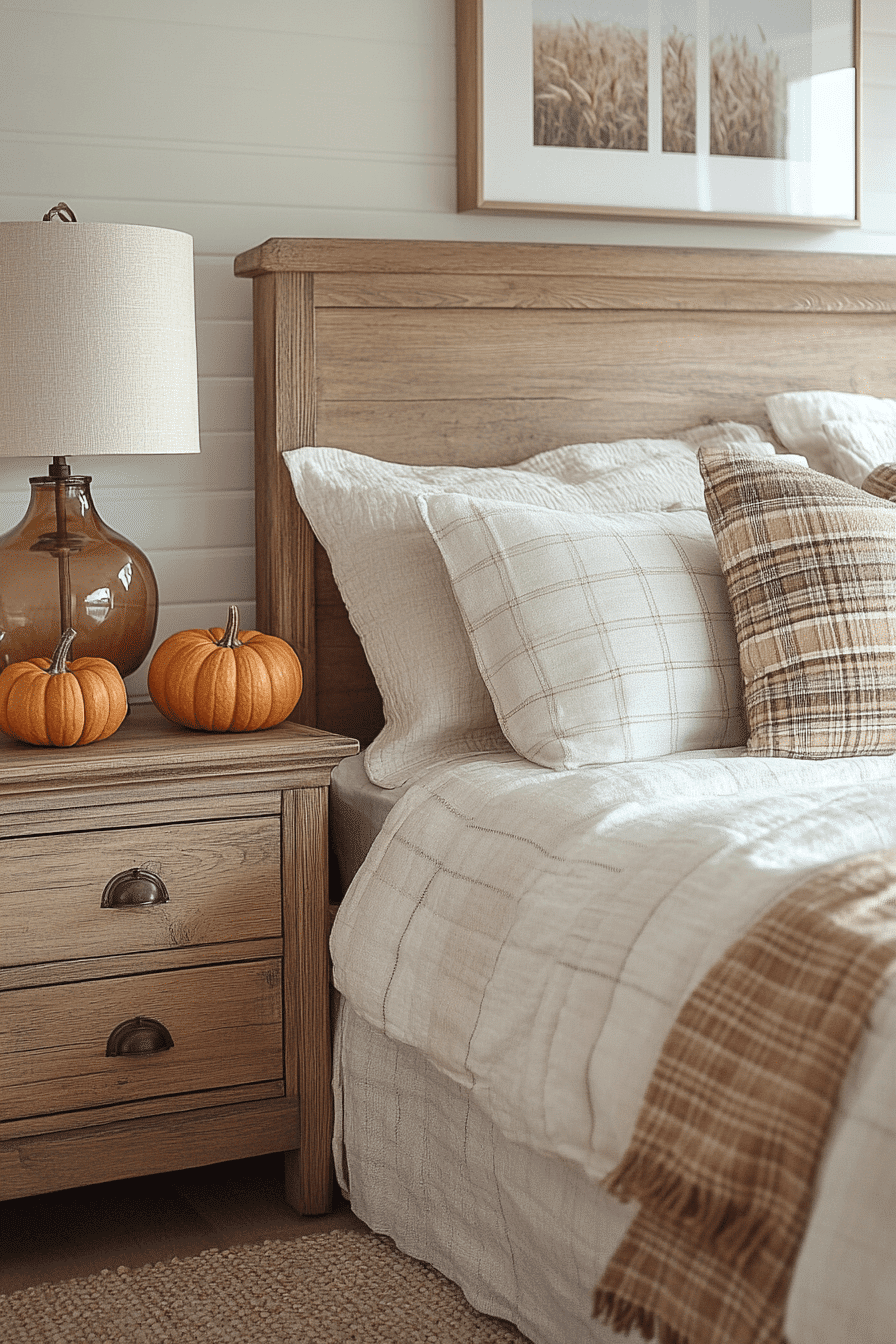 Flannel bedding is a timeless staple for fall bedroom decor. Its soft texture and plaid patterns immediately create a cozy, rustic vibe. Layering flannel with throws and pillows adds depth and warmth to your bed. Neutral or earthy tones blend perfectly with seasonal accents. This look transforms your room into a snug retreat ideal for chilly nights. Click now to explore more cozy fall bedroom decor ideas!