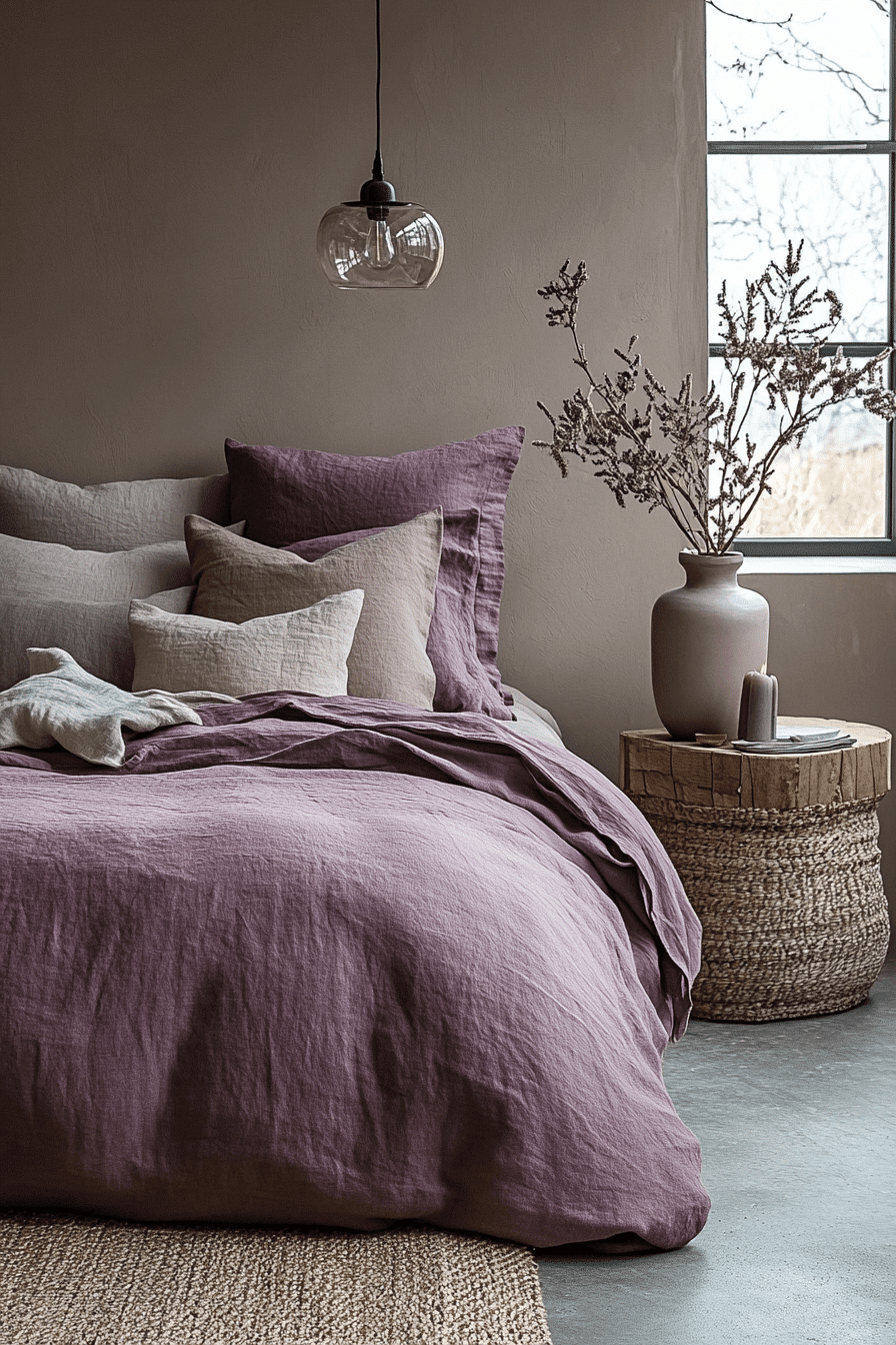 Mauve and taupe create a soft, elegant palette for fall bedroom decor. These muted tones blend perfectly with seasonal accents. Layering bedding in these shades adds depth and sophistication. Pair them with gold or copper for warmth. The result feels modern yet timeless. Tap here to explore more color layering in fall bedroom decor!