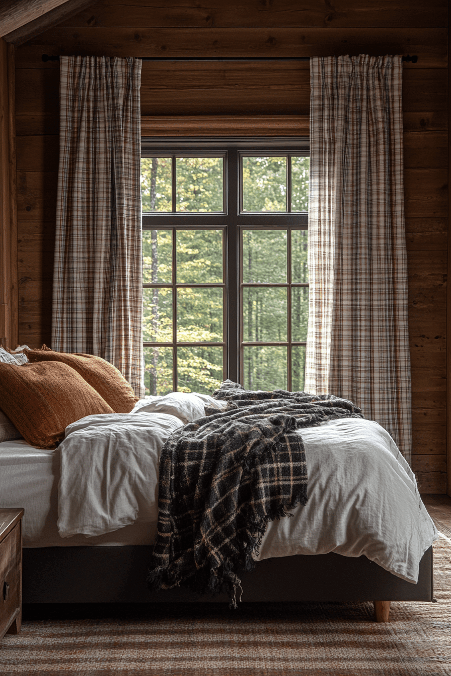Plaid curtains bring instant warmth to fall bedroom decor. They add pattern and texture without overwhelming the space. Rich tones like burgundy and forest green enhance the autumn vibe. Pair them with neutral walls for balance. This detail ties the entire room together beautifully. Discover more curtain inspiration for fall bedroom decor by clicking here!