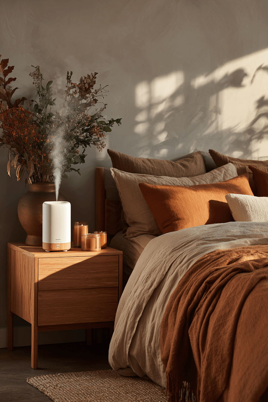 A wall diffuser with spiced apple scent enhances fall bedroom decor. The fragrance creates a cozy and inviting atmosphere. Its sleek design doubles as a stylish accent. Seasonal scents add an extra layer to your autumn theme. It makes the space feel like a true seasonal sanctuary. Tap now to find more scent ideas for fall bedroom decor!