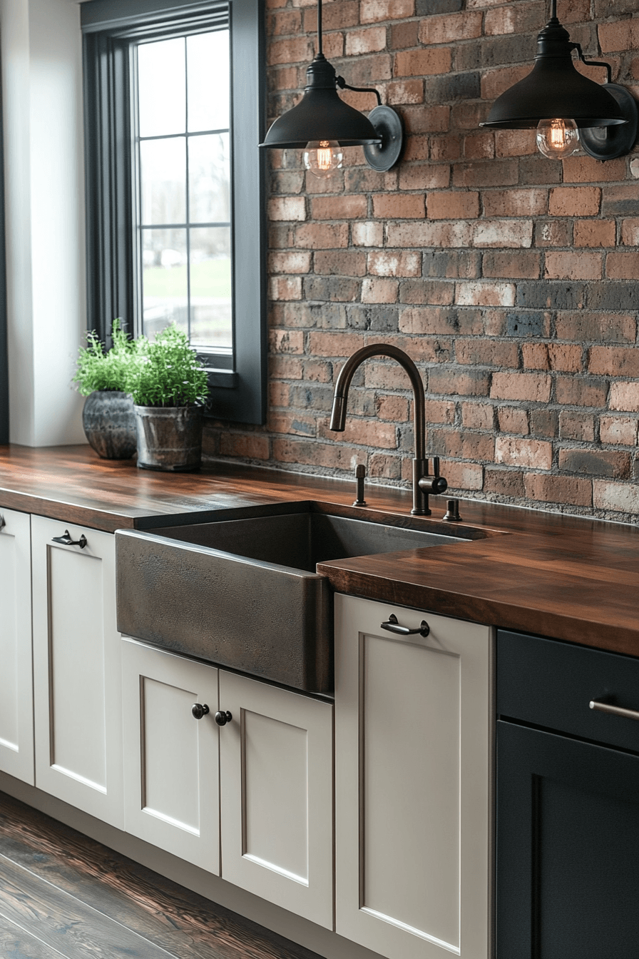 Adding a bit of contrast brings brick to life in a whole new way. A farmhouse kitchen brick backsplash paired with glossy finishes creates a stylish balance. The shine highlights the brick’s natural charm while keeping the room lively. This combination feels modern but still embraces farmhouse tradition. It’s a great way to make your kitchen pop without losing its rustic core. Tap now to discover more brick designs that truly shine!