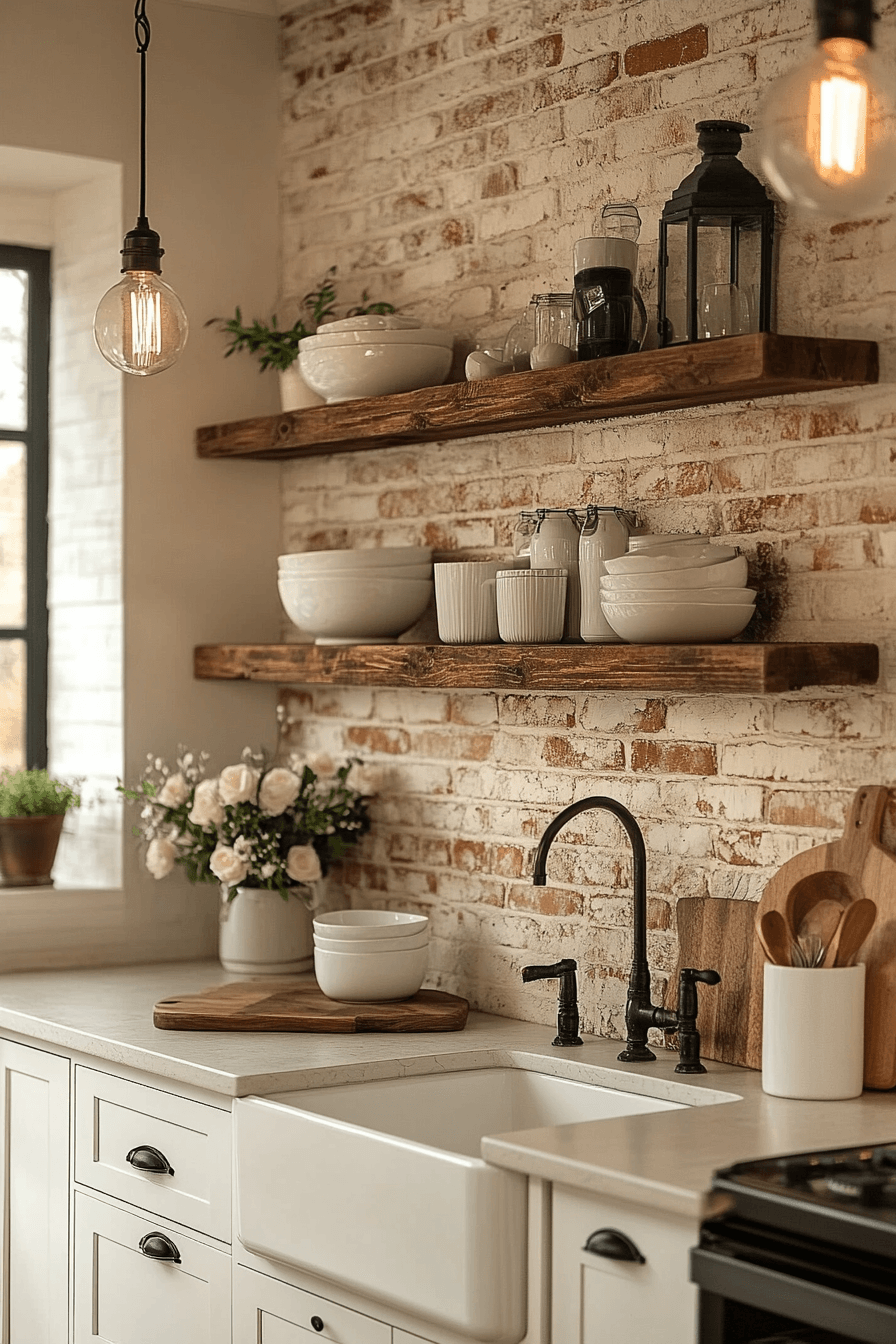 Whether you’re drawn to the warmth of red brick, the character of whitewashed surfaces, or the charm of vintage-inspired patterns, these farmhouse brick designs offer endless ways to bring country charm into your kitchen. The key is creating warmth that feels both authentic and inviting.