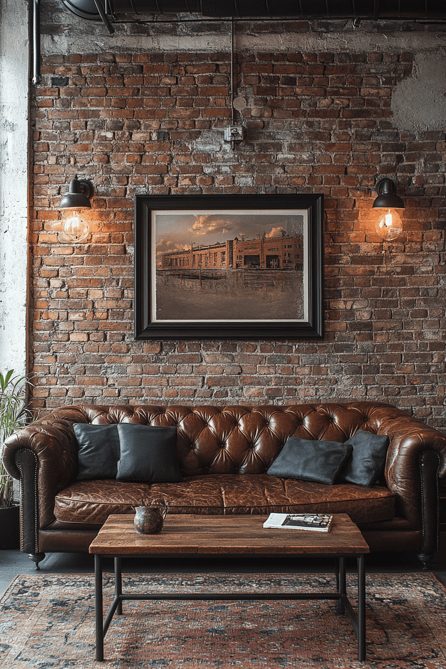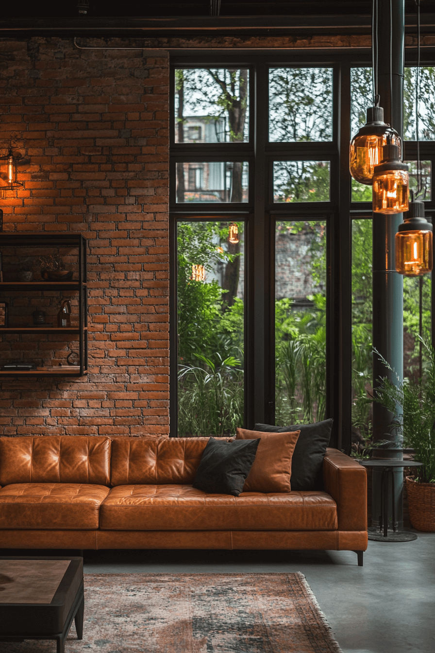 Brick and metal combine seamlessly in an industrial living room to create balance and depth. Exposed brick walls pair beautifully with matte black furniture. Metallic lighting fixtures add brightness and style. Neutral upholstery softens the roughness of the design. This combination captures the essence of urban industrial chic. Click here to see more brick and metal harmony ideas.