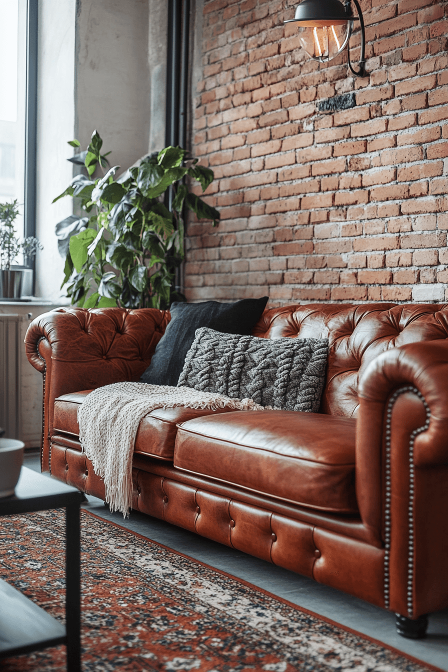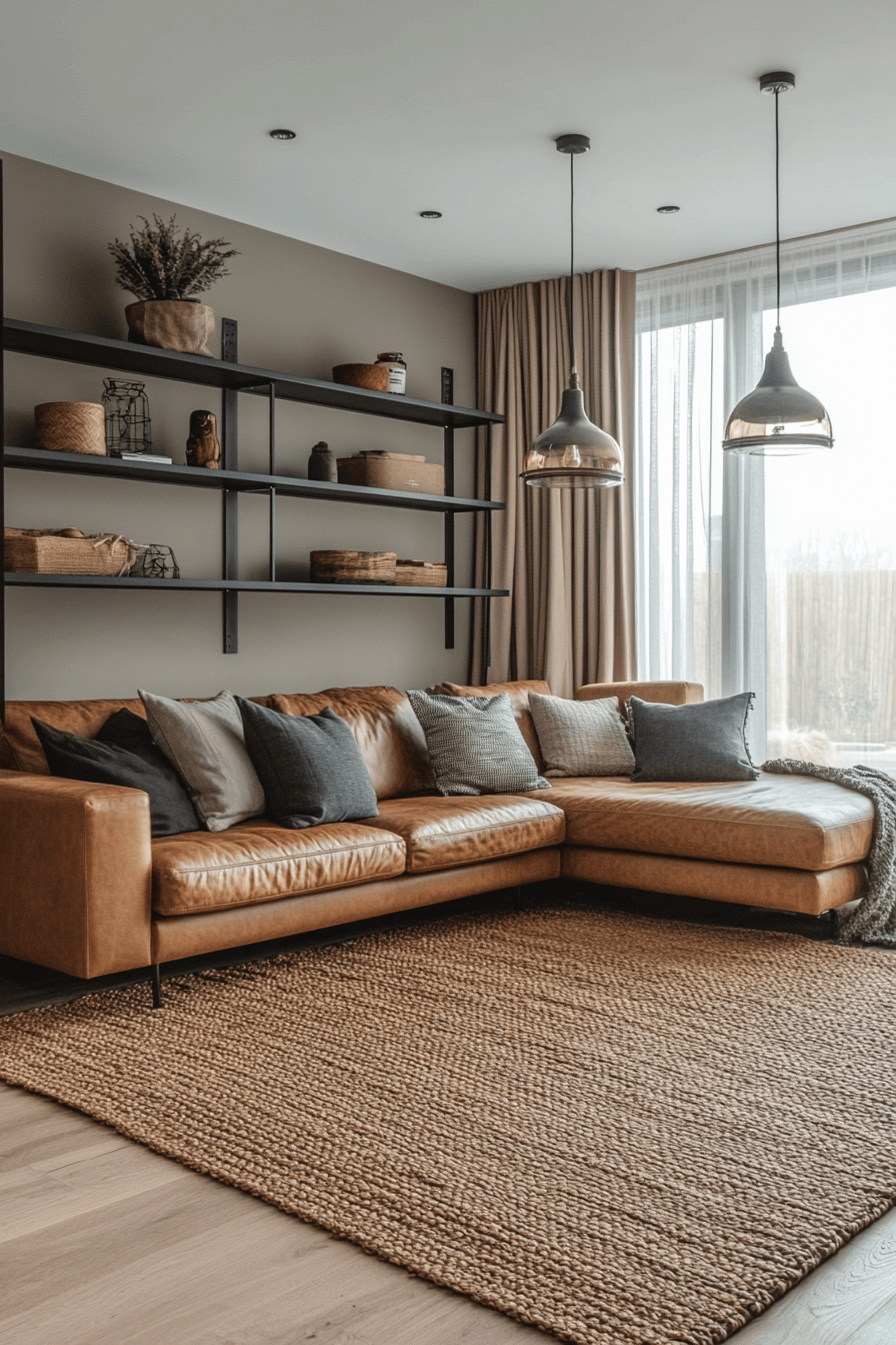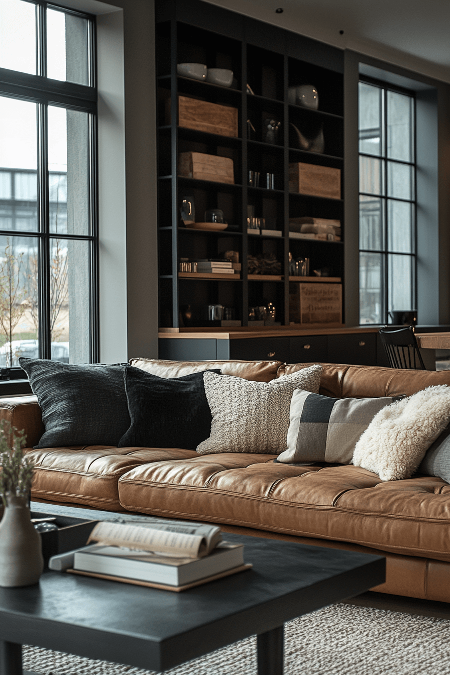 Cozy industrial living rooms strike the balance between rugged materials and inviting comfort. Leather sofas paired with soft throws create a warm yet stylish vibe. Dark metal finishes add structure without overwhelming the room. Accent lighting enhances the atmosphere, making the space feel inviting. This design works well for small apartments seeking sophistication. Click here to uncover cozy industrial luxe ideas.