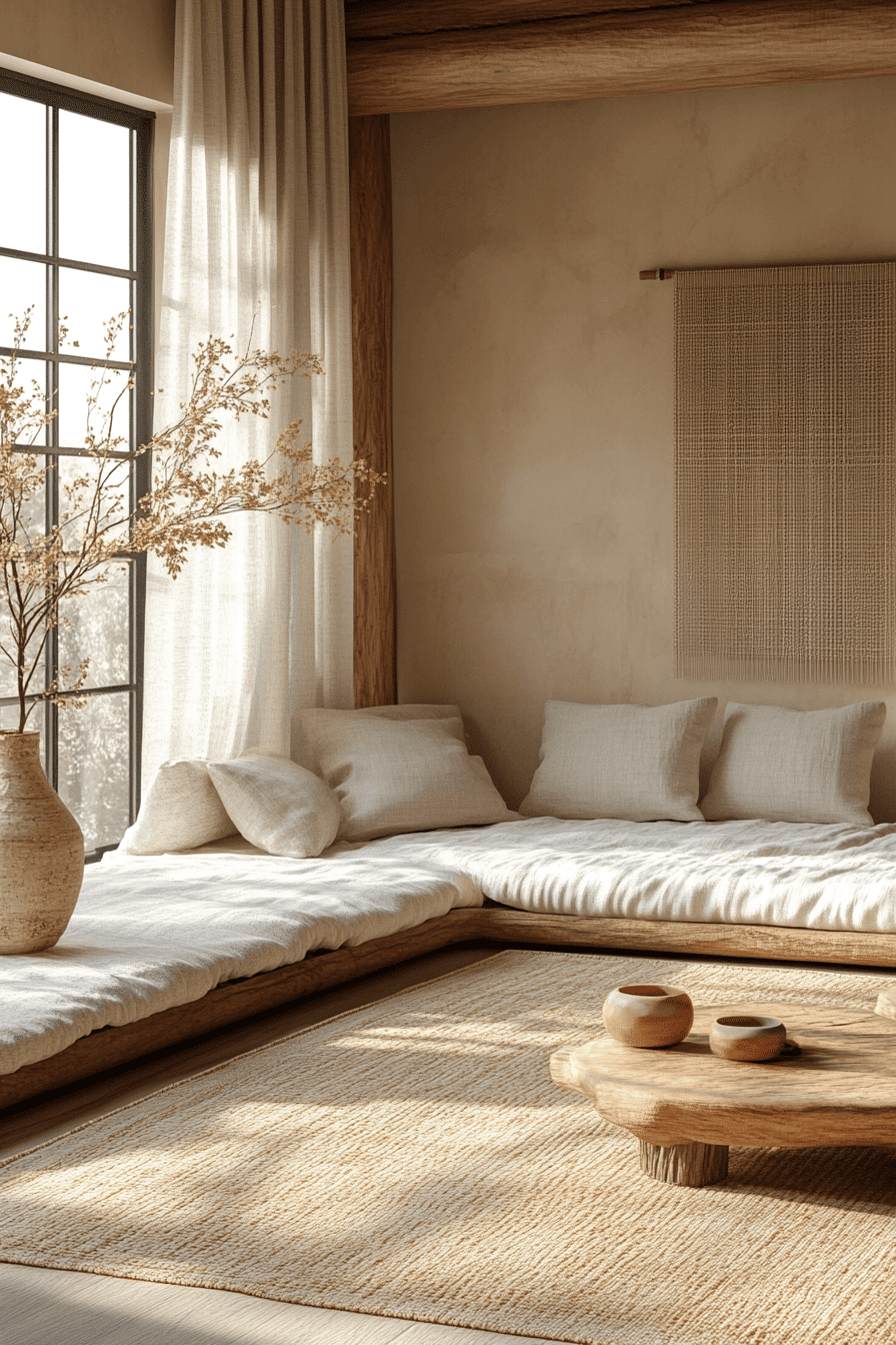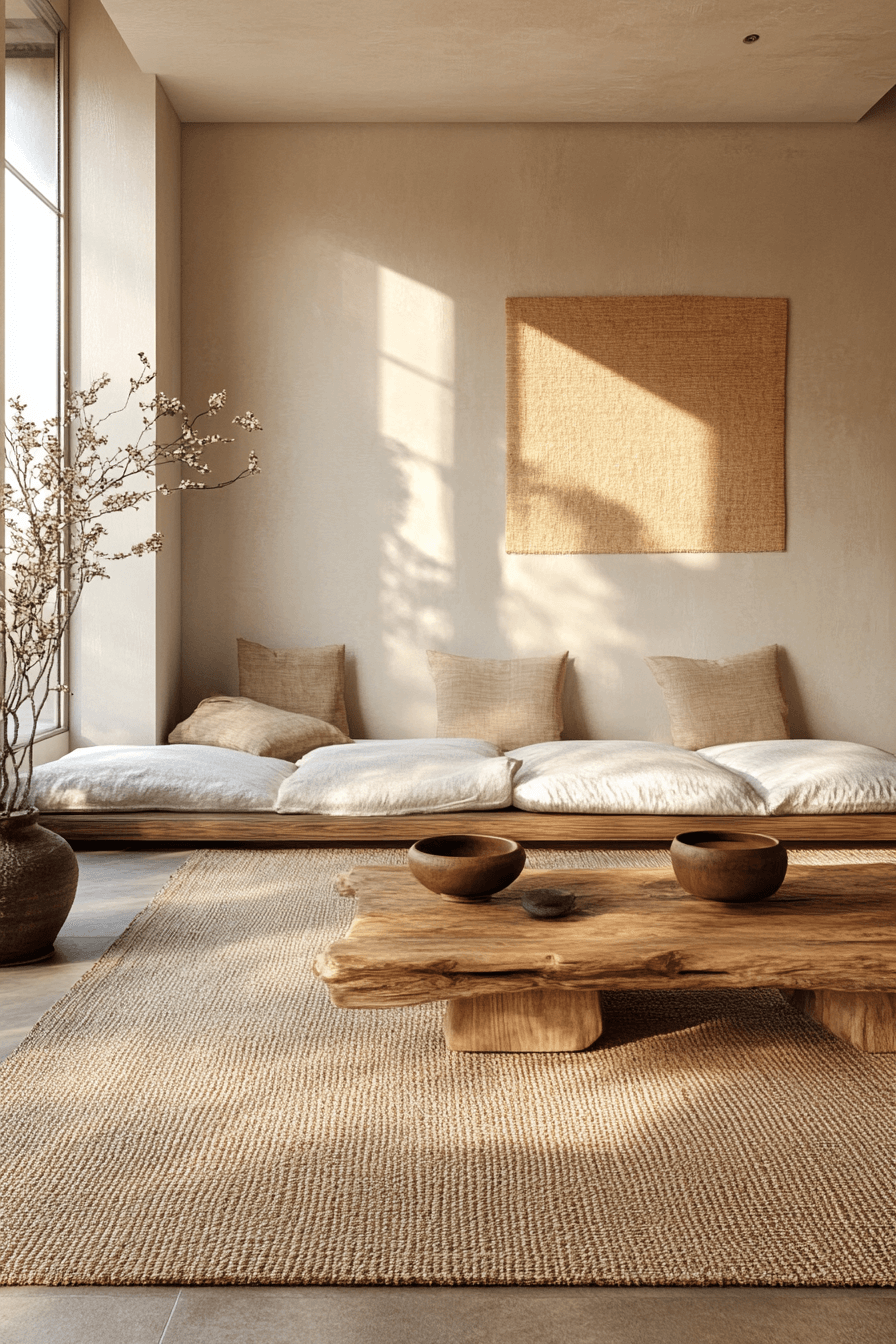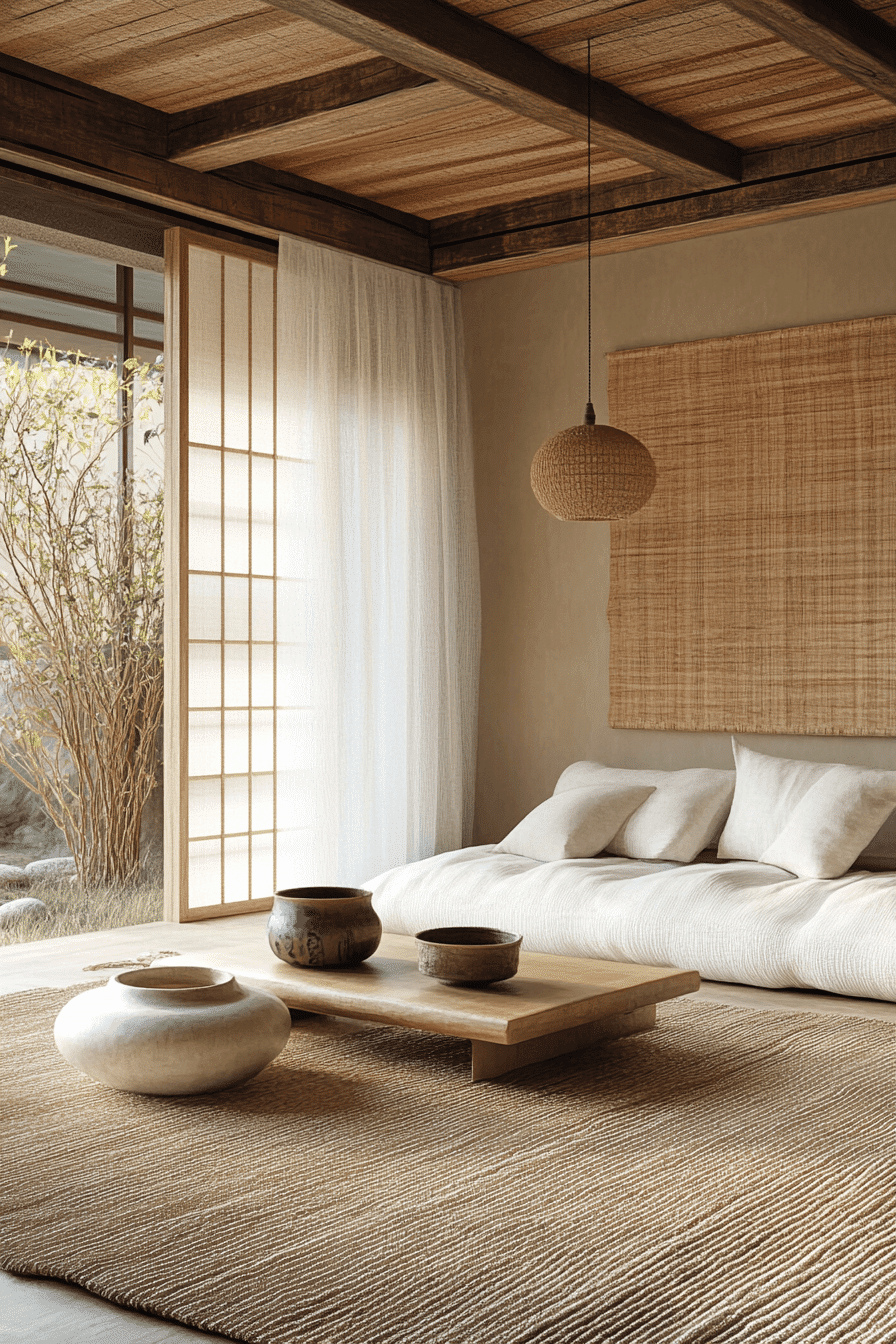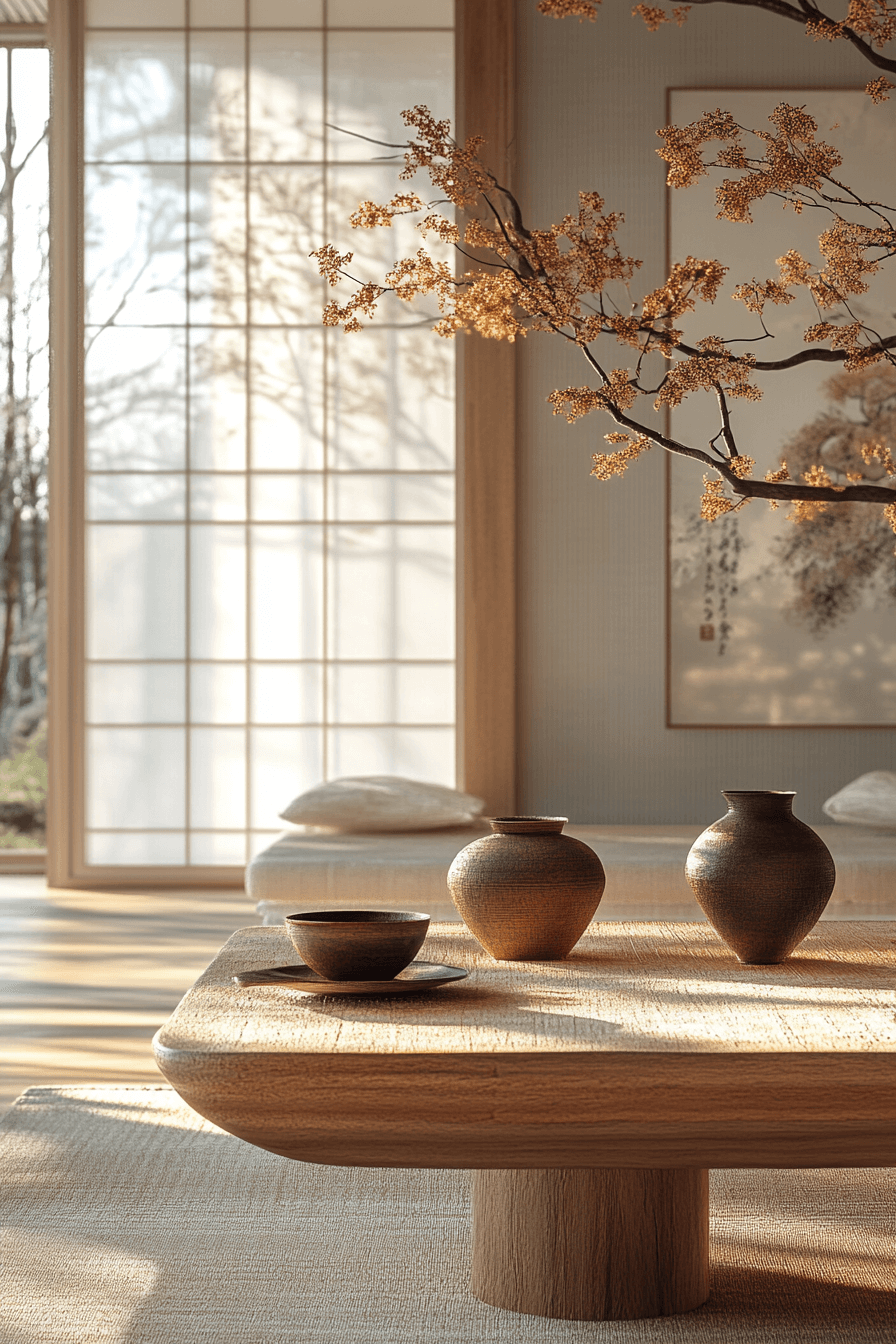 Japandi warmth retreat designs create inviting spaces with layered fabrics, textured wood, and neutral tones. Handmade pottery and woven accents add charm and authenticity. Minimalist layouts ensure openness and visual flow. Sunlight highlights the rich organic details, enhancing coziness. The overall atmosphere feels relaxing and restorative. Tap here to explore more japandi warmth retreat inspirations.