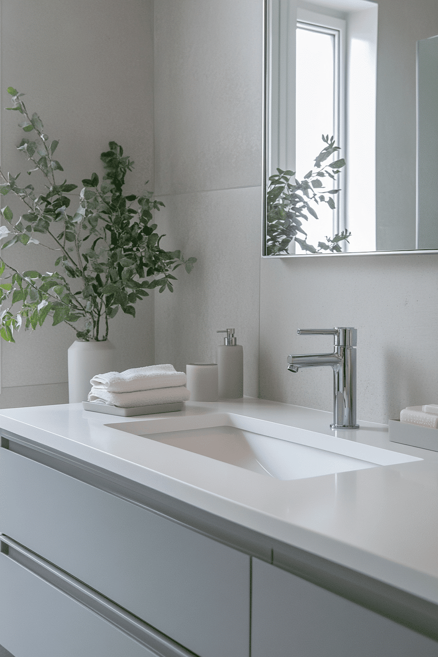 Handleless vanities contribute to a sleek and seamless minimalist bathroom. Push-to-open or recessed pulls eliminate visual noise. The flat cabinetry maintains smooth surfaces that enhance the modern feel. Integrated design makes the room feel more expansive and polished. It’s minimalism at its most functional. Tap now to explore handleless storage solutions in minimalist settings.