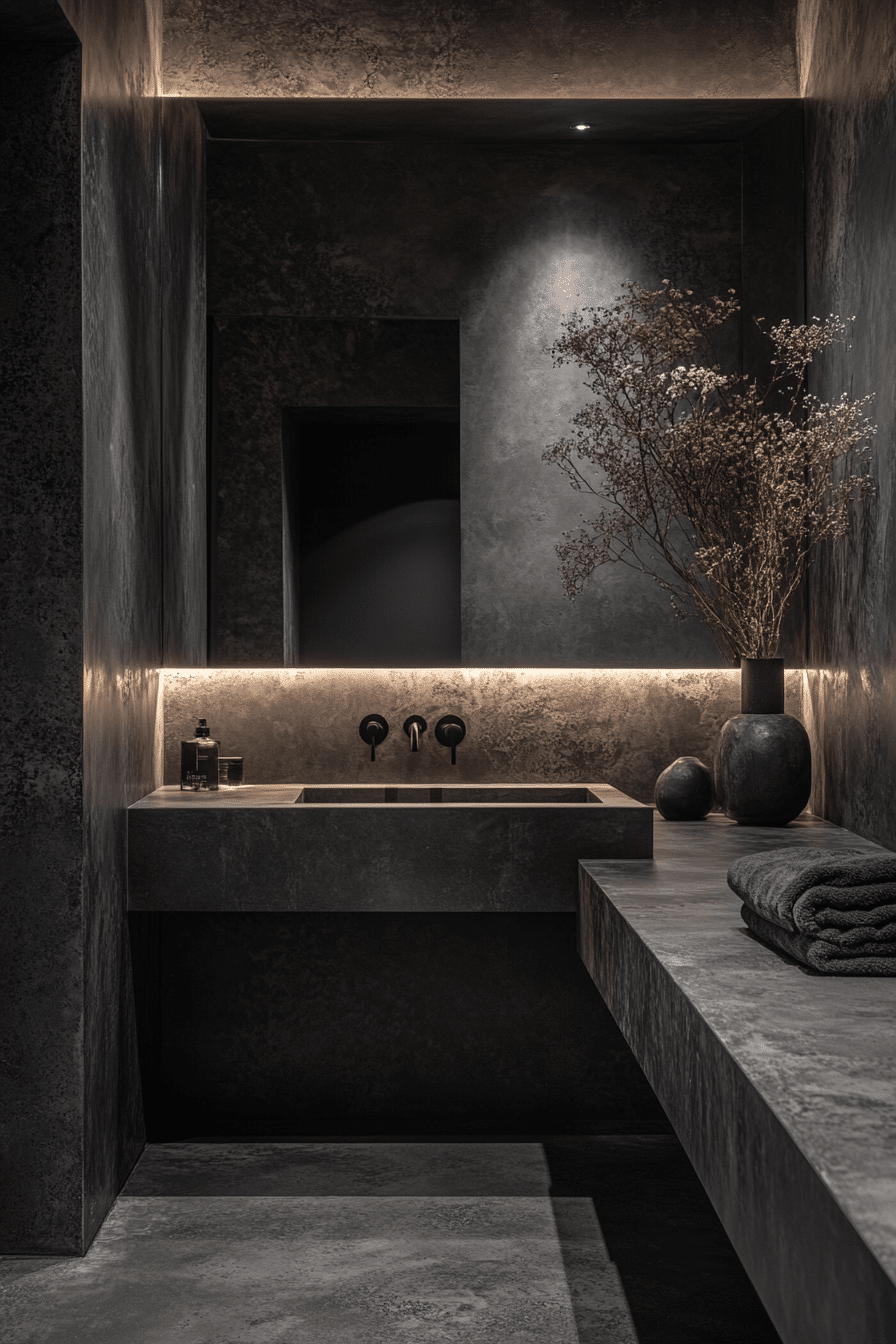 A monochrome minimalist bathroom uses a single color across surfaces for a bold, unified look. Whether it’s all white, all grey, or even all black, the effect is striking and serene. Consistent color amplifies architectural details and eliminates distraction. Materials, not color, become the star of the design. The result is dramatic but uncluttered. See how monochrome schemes bring focus and calm to minimalist bathrooms here.