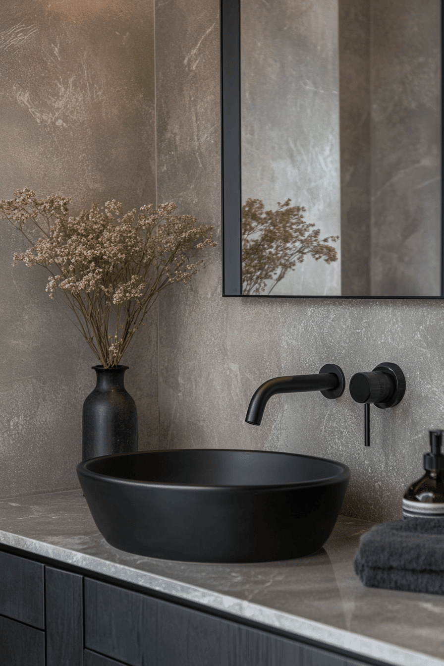 Matte black fixtures bring bold definition to a minimalist bathroom without overwhelming the space. Their soft, non-reflective finish adds sophistication while maintaining a calm, modern vibe. These fixtures contrast beautifully against white or light grey surfaces for a high-impact, low-fuss look. Sleek lines and minimal shapes keep the aesthetic streamlined and stylish. They embody minimalism through functional elegance. Tap now to see how matte black can upgrade your minimalist bathroom.