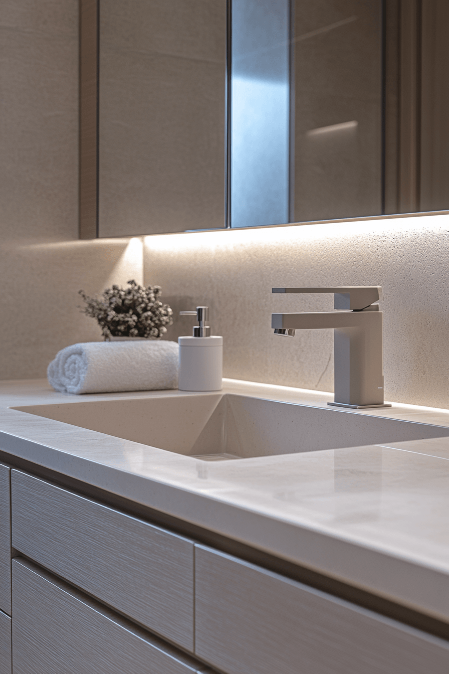 Seamless sink integration is a hallmark of sleek, minimalist bathroom design. Built into the countertop with no visible seams, the sink blends perfectly into the vanity. This uninterrupted surface makes cleaning easier and design more cohesive. It eliminates visual noise and highlights modern geometry. Paired with clean-lined faucets and under-sink storage, the look is ultra-refined. Tap to see how integrated sinks create a seamless minimalist vibe.