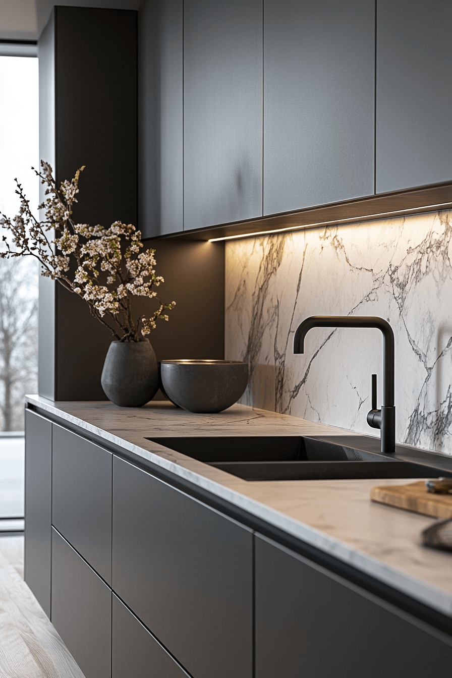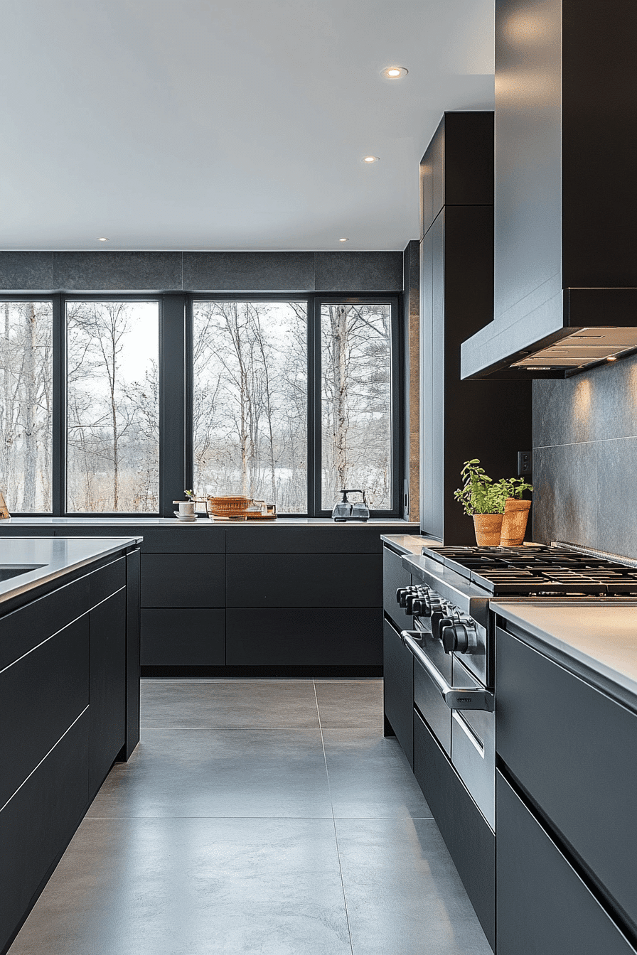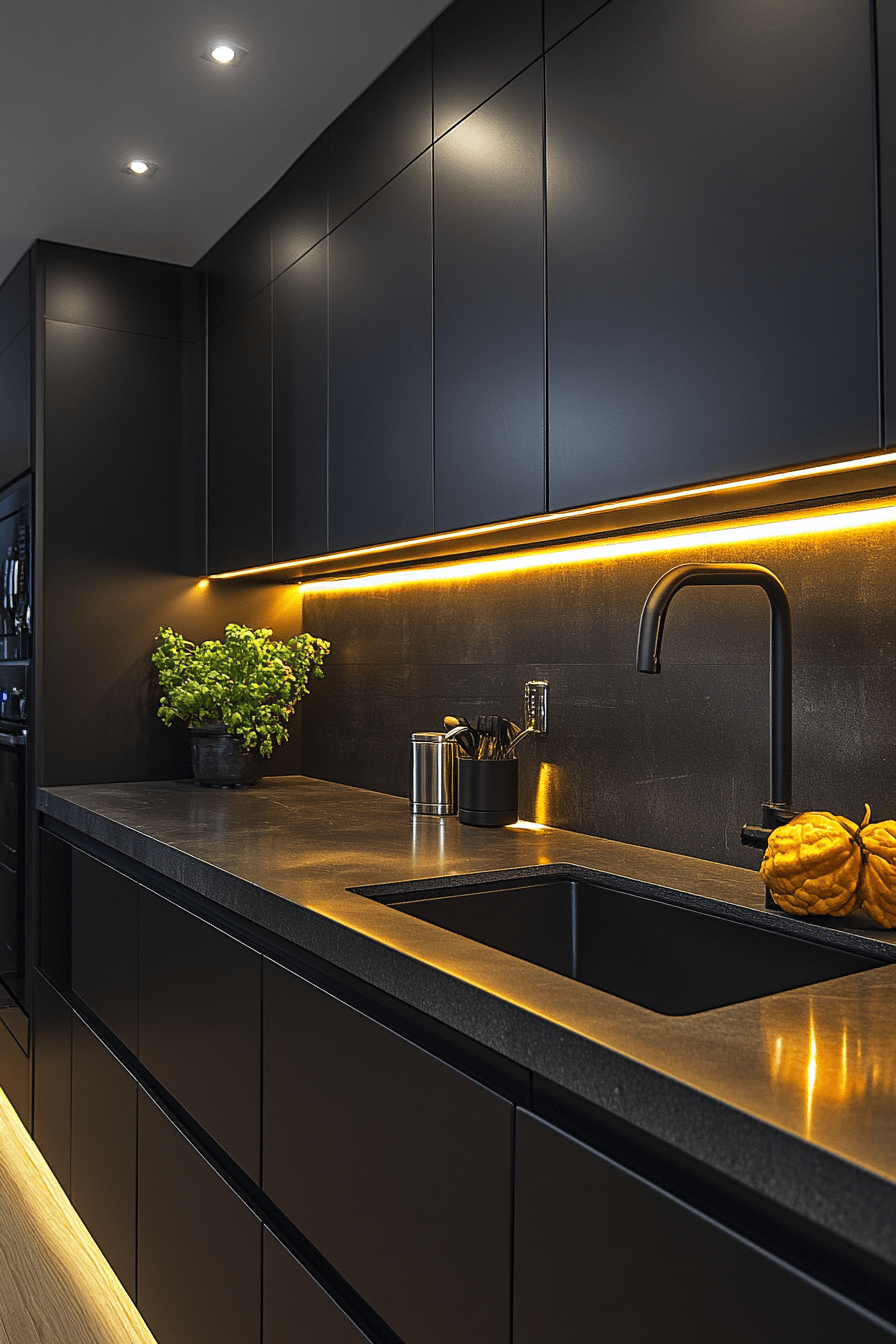 A matte black minimalist kitchen makes a bold statement while maintaining a sleek, understated elegance. The flat finish softens the intensity of the black, giving it a luxurious but approachable feel. Paired with minimal hardware and clean lines, this design exudes contemporary sophistication. The lack of gloss reduces visual noise, which is ideal for a clutter-free environment. Subtle lighting adds depth, allowing the surfaces to breathe. Click through to see how matte black redefines the minimalist kitchen.
