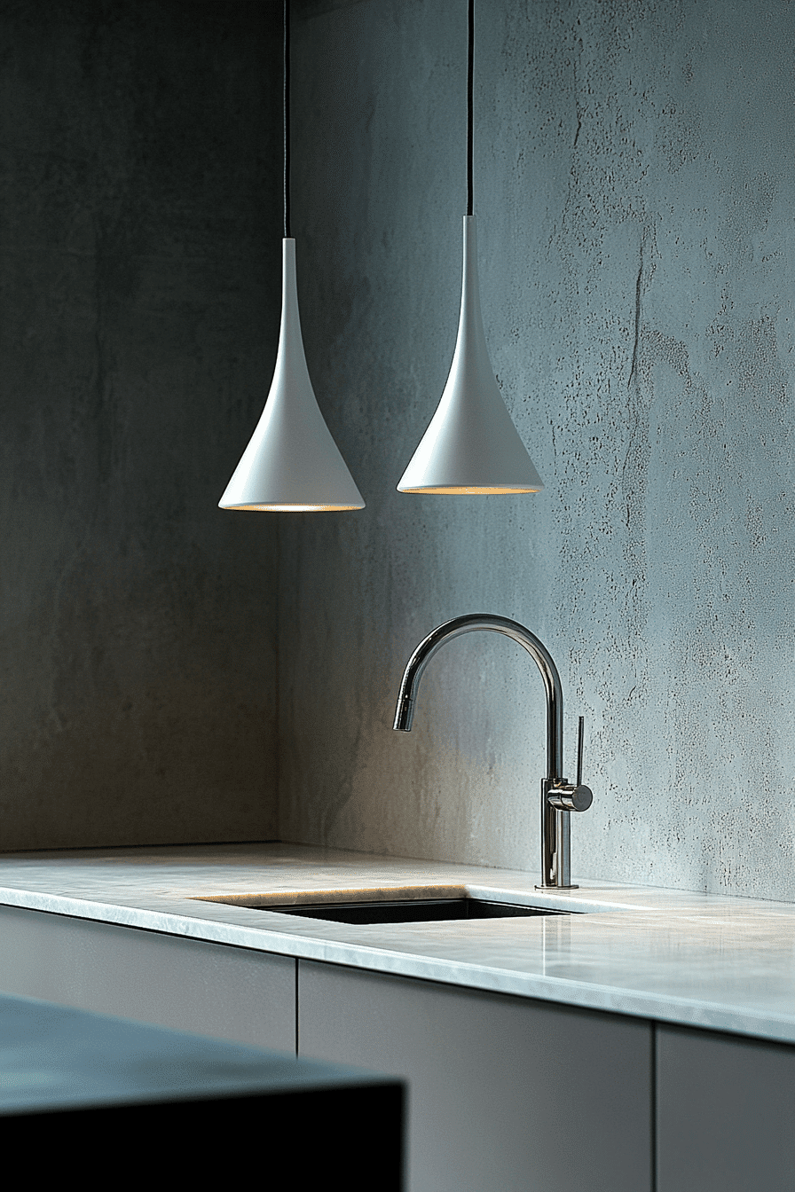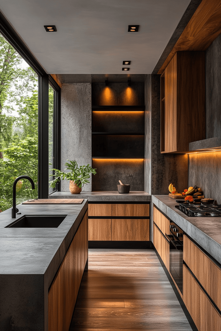 A concrete-inspired minimalist kitchen brings industrial elegance into a sleek, modern space. Whether through real concrete surfaces or textured finishes, this style offers a raw, clean vibe. The matte grey tones complement minimalist cabinets and streamlined fixtures. It’s durable, easy to clean, and inherently stylish. Paired with black or wood accents, it feels balanced and bold. Click to see how concrete textures can enhance your minimalist kitchen.