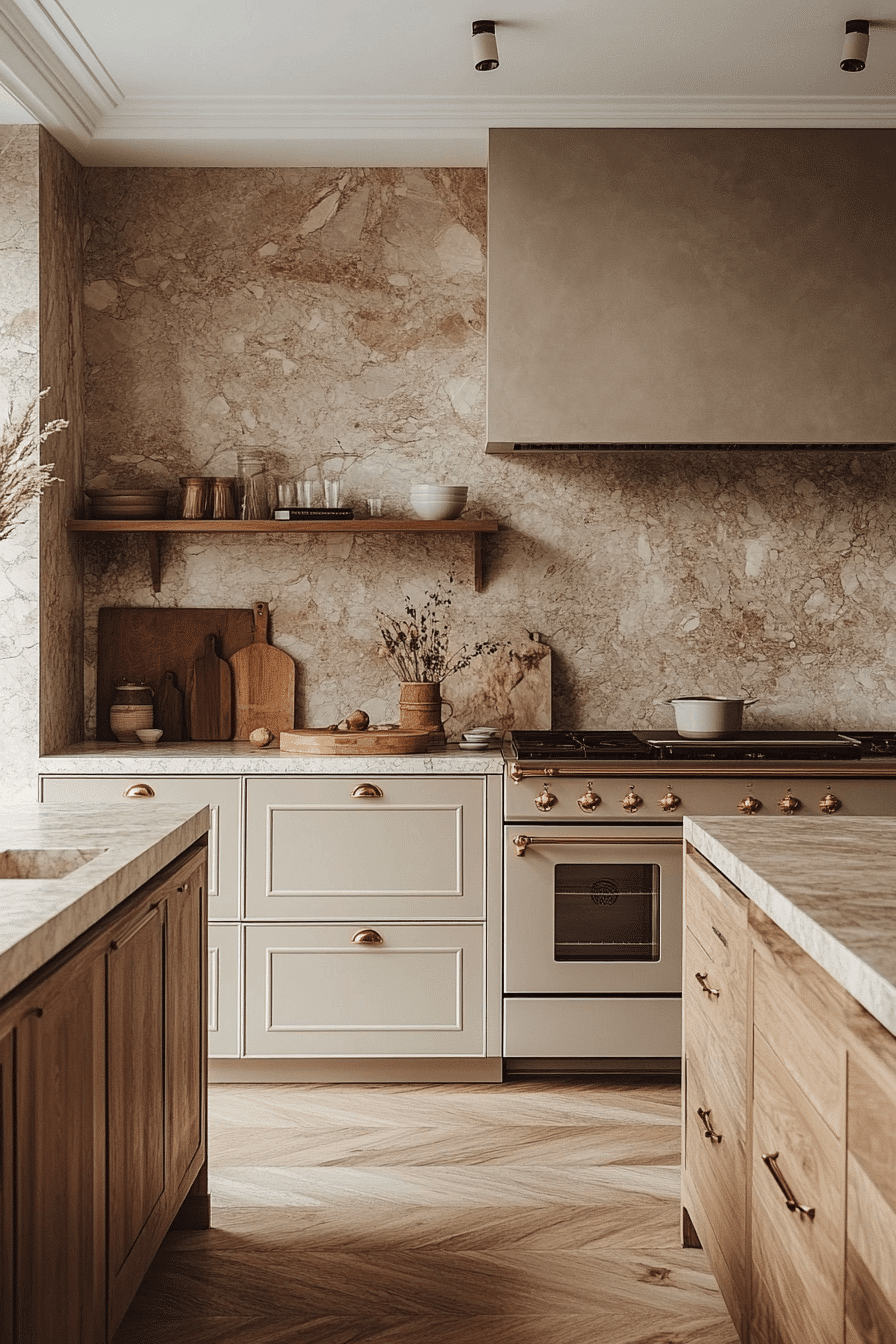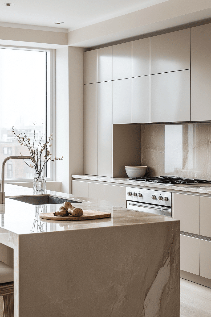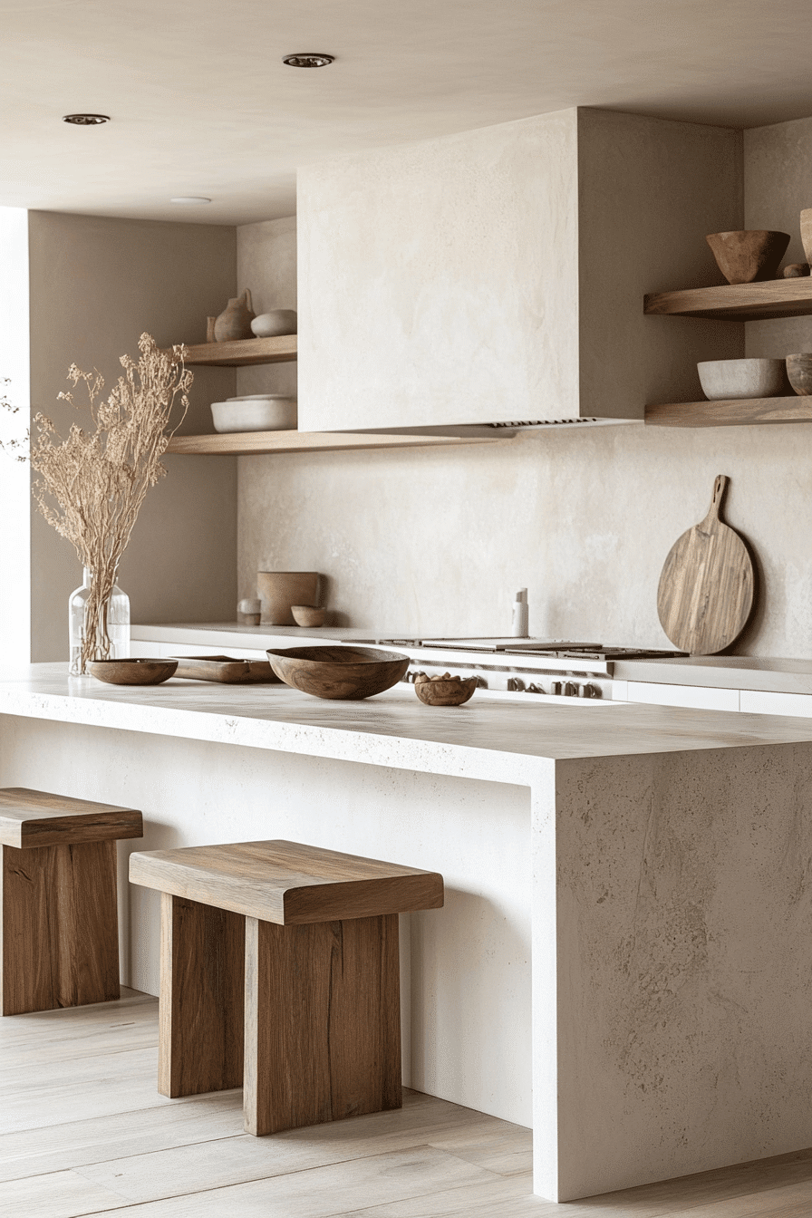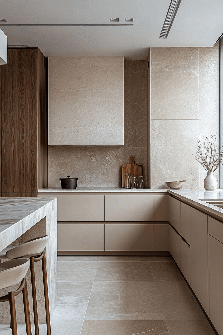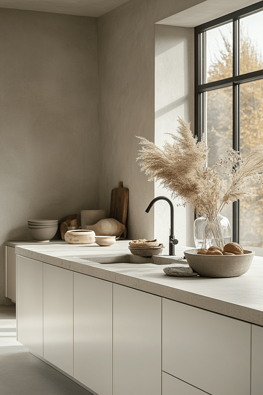 A textured neutral minimalist kitchen adds quiet dimension through surfaces like matte tile, ribbed cabinetry, or soft concrete finishes. These subtle textures enhance the visual interest without disrupting the calm, clean aesthetic. The neutral palette keeps the focus on form and material instead of bold color. Texture replaces ornamentation in this design, aligning perfectly with minimalist values. It feels thoughtful, elevated, and easy to maintain. Curious how texture can transform your minimalist kitchen? Click to explore creative ideas.