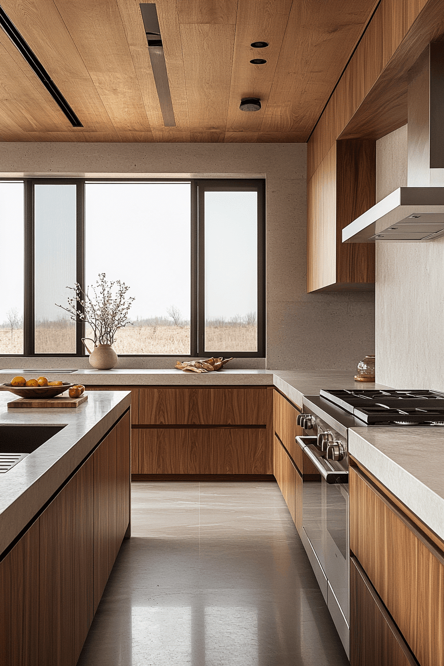 A low-profile minimalist kitchen emphasizes horizontal lines and sleek, unobtrusive forms. This layout uses flat cabinetry, integrated cooktops, and hidden hoods to reduce visual height and promote flow. It’s perfect for open-plan homes where the kitchen should blend in, not dominate. The design feels light, spacious, and effortlessly modern. Every element is intentional and refined. Tap here to explore low-profile concepts that define minimalist kitchens.